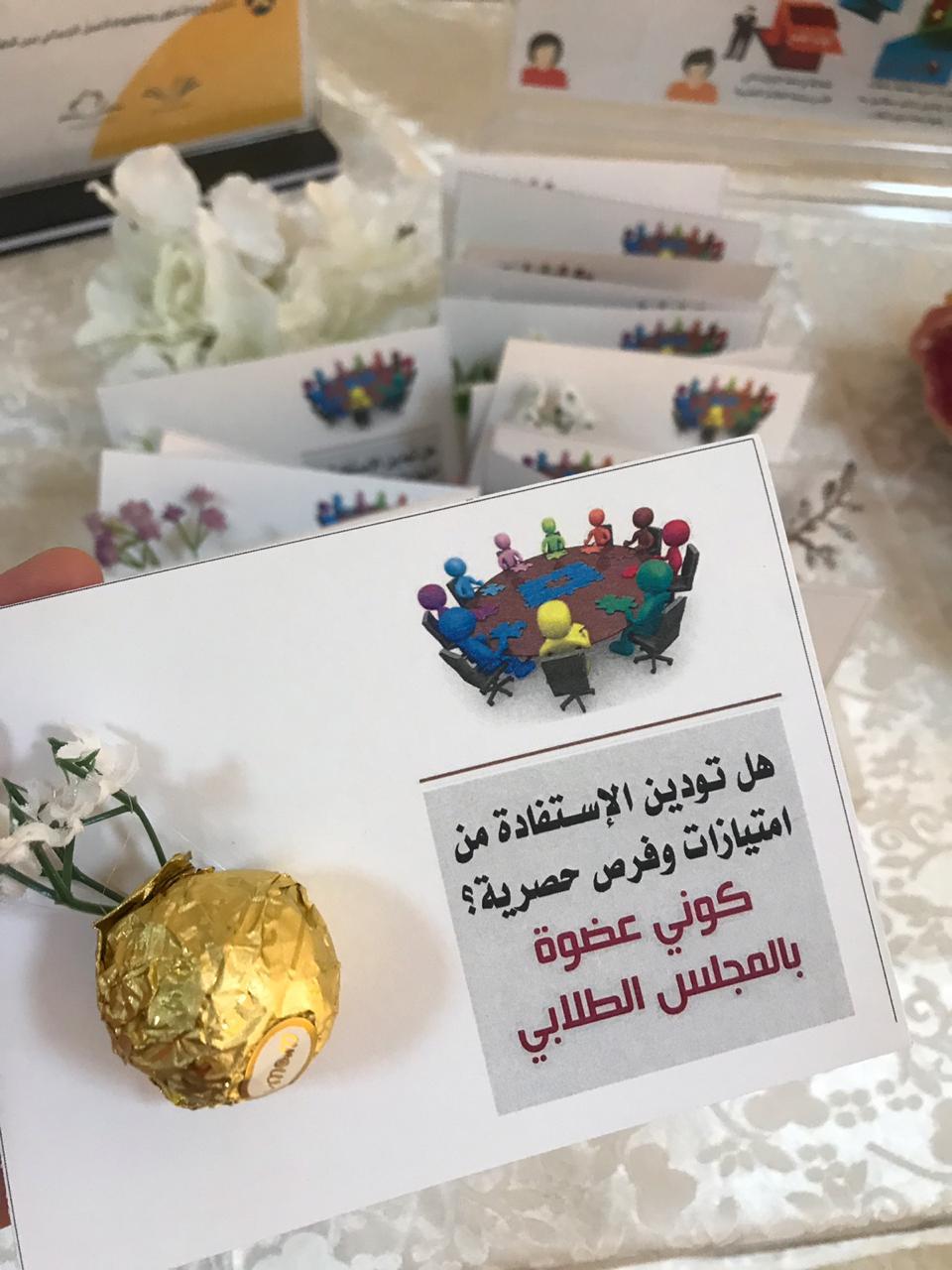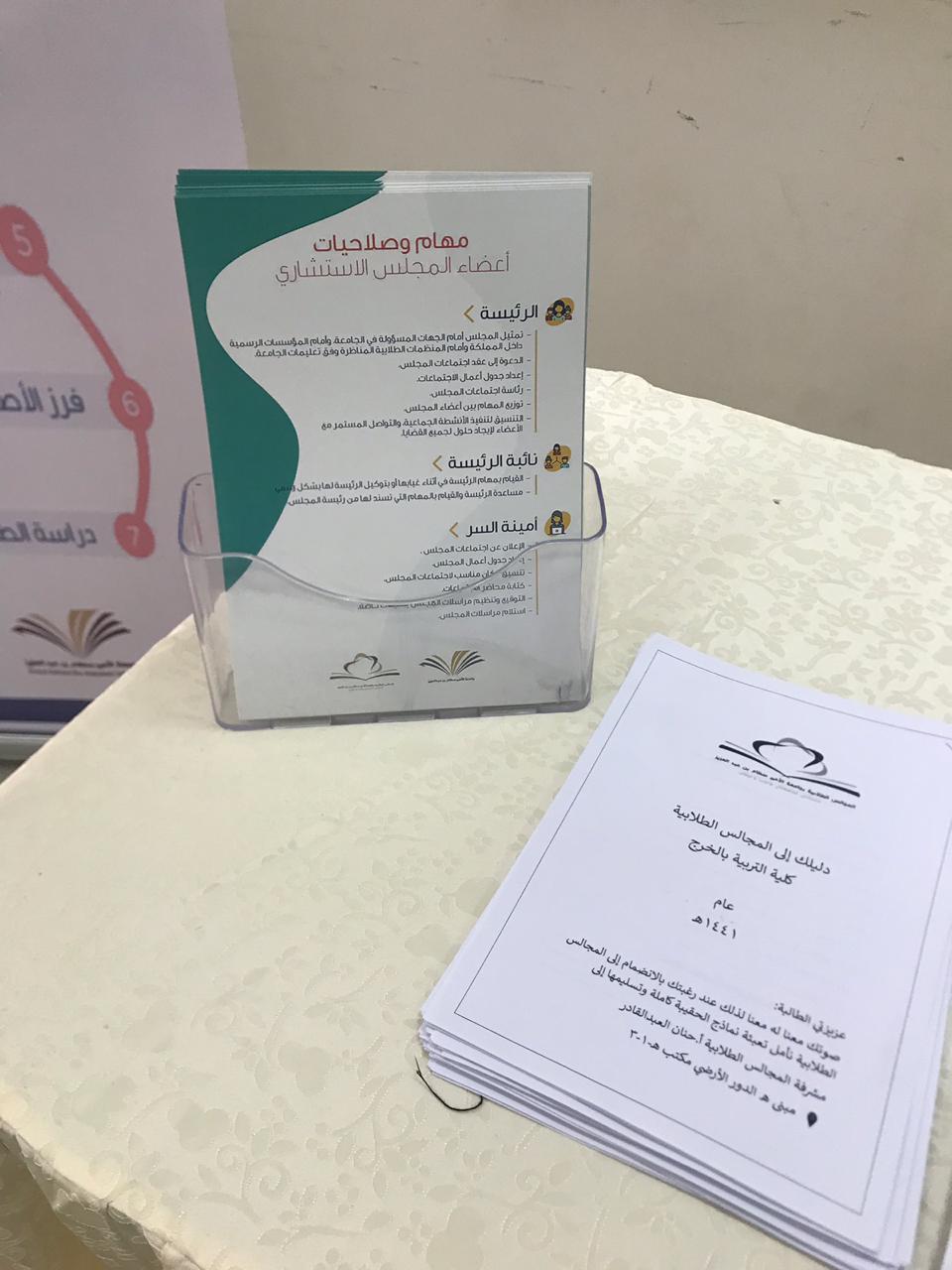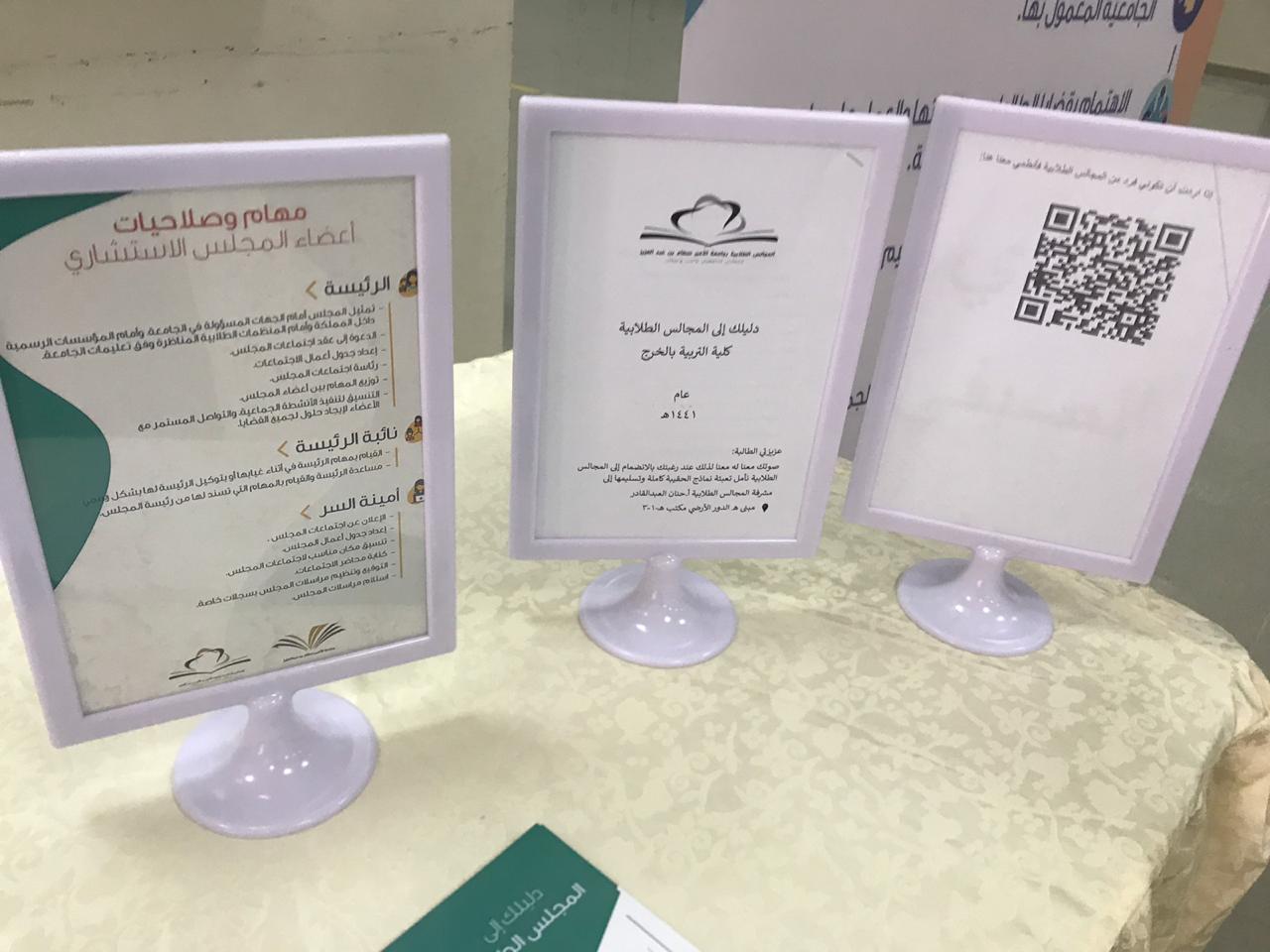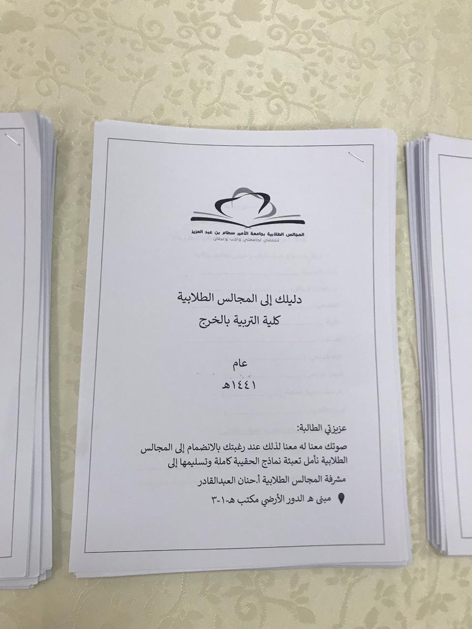 تحت رعاية وكيلة كلية التربية بالخرج الدكتورة/ منيرة بنت عبدالله العسكر، انطلقت الحملة التعريفية بالمجلس الطلابي تحت إشراف مشرفة المجالس الطلابية أ . حنان العبدالقادر التي بدأت من يوم الأحد ١٤٤١/١/٣٠ وحتى يوم الثلاثاء وتم تصميم فيديو قصير تعريفي بالمجلس ومهامه وتم نشره عبر الواتس آب لدى مجموعات الطالبات وعمل استمارة إلكترونية للتسجيل وإقامة ركن تعريفي للمجلس ومهامه وأهدافه وذلك بساحة مبنى( ب) للكلية مع توزيع منشورات تحفيزية و توضيحيه للطالبات .