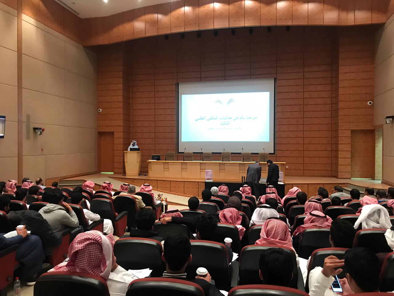 برعاية كريمة من سعادة عميد شؤون الطلاب الدكتور ثلاب بن عبدالله الشكره اليوم بمسرح كلية الهندسة الملتقي التحضيري للمؤتمر العلمي الثالث ، حيث بدأ المؤتمر بقراءة القران الكريم ثم كلمة لمنسق المؤتمر العلمي بالكلية هنأ فيها الطلاب الفائزين كما حثهم علي الاستمرار فى البذل والعطاء من اجل رفعة وطننا الغالى. ثم كلمة ممثل عميد الكلية سعادة وكيل الكلية للدراسات العليا والبحوث والجودة والتطوير التى اثنى فيها على مشاركات الطلاب وحث اعضاء هيئة التدريس والطلاب على بزل المزيد من الجهد لتمثيل الكلية بالبحوث العلمية والابتكارات على المستوى الدولى أيضا . ثم عرض نماذج من مشاركات الطلاب فى المحاور المختلفة فى الاقسام المختلفة للكلية