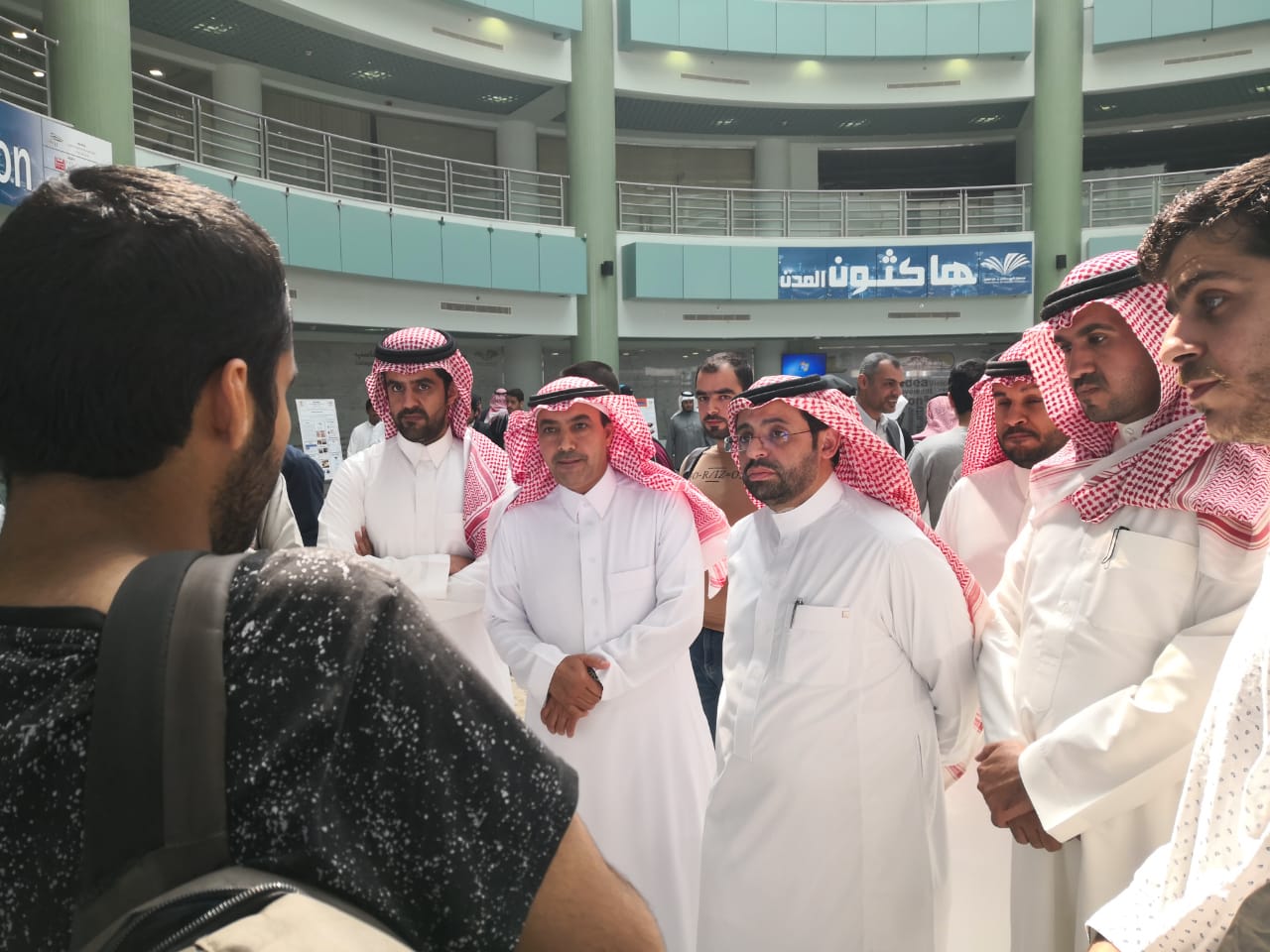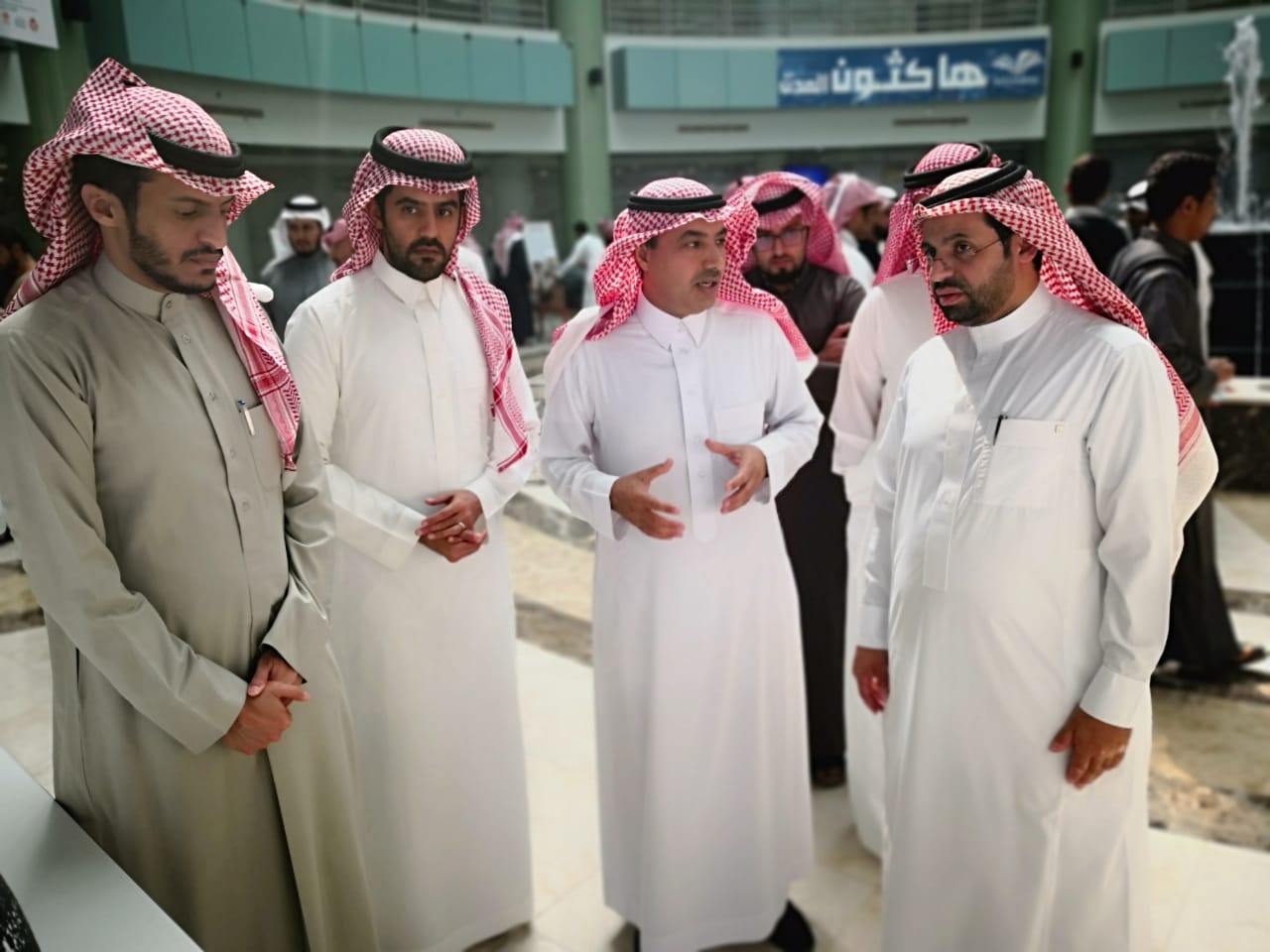 وبعد انتهاء الملتقي صاحب وكيل الكلية ومنسق الكلية للملتقى العلمي سعادة عميد شئون الطلاب وسعادة أعضاء هيئة التدريس والحضور الكريم فى جولة تعريفية بالمعرض المصاحب والتعريف بمشاركات الطلاب .