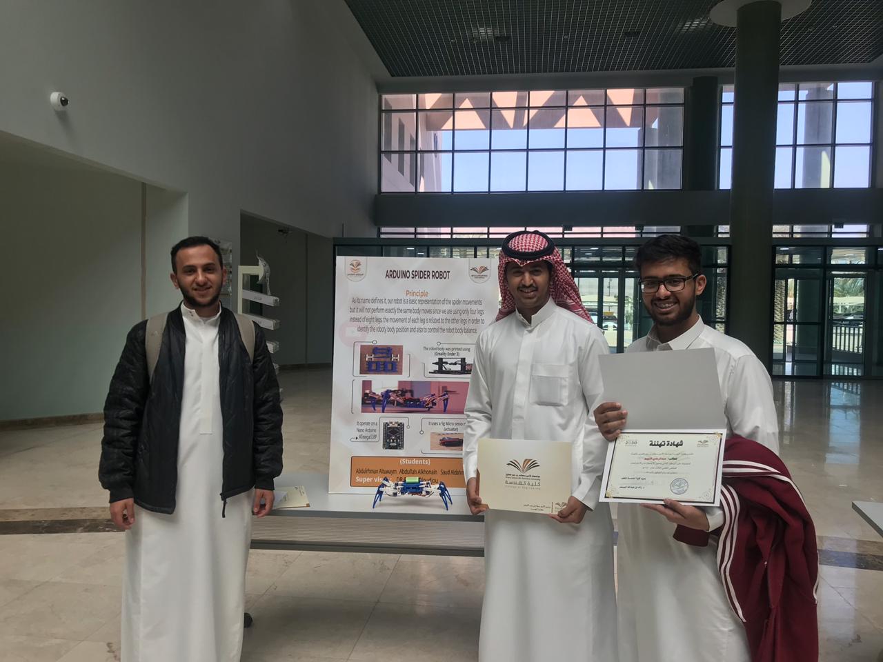وقام سعادة عميد شئون الطلاب بتوزيع الجوائز وشهادات التقدير على لجنة التحكيم والفائزين من الطلاب .