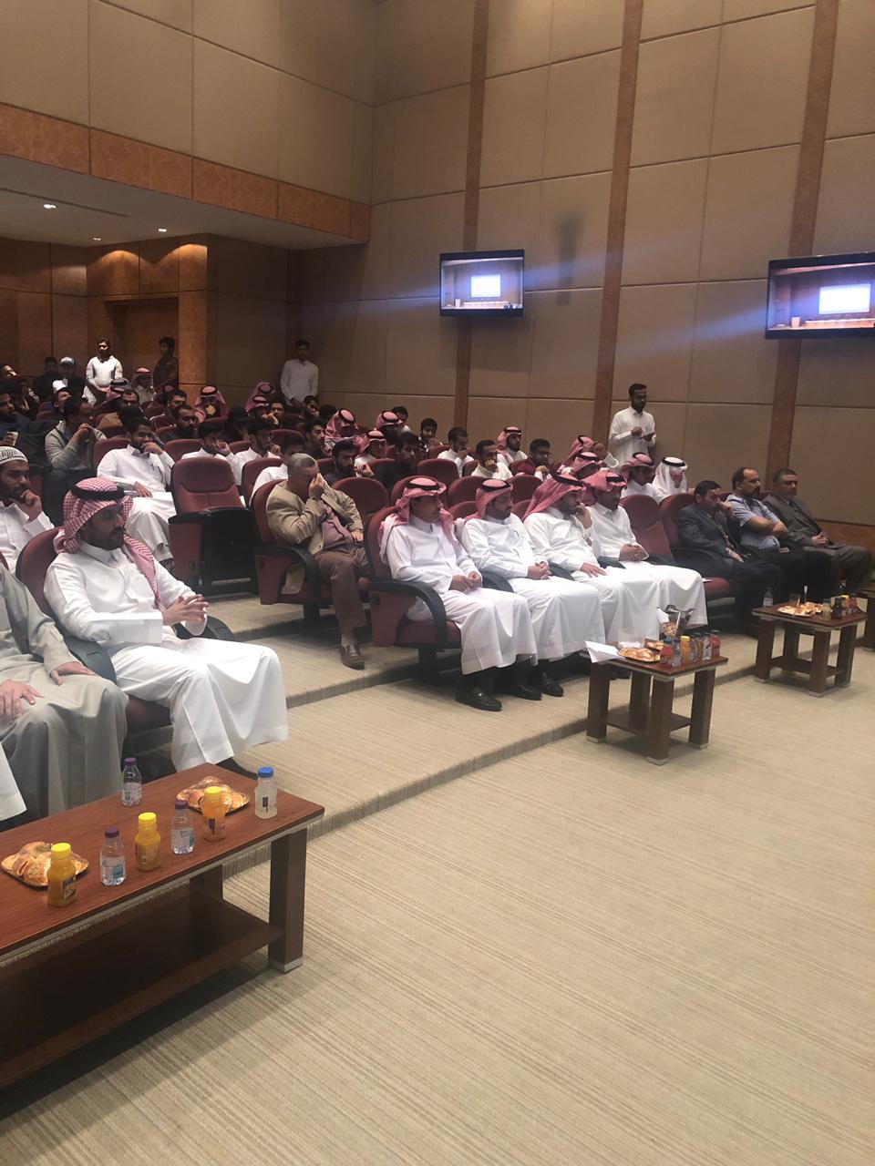 . تلاها كلمة سعادة عميد شؤن الطلاب التي اثنى فيها على اعضاء هيئة التدريس والمستوى المتميز للطلاب المشاركين وتمنى لهم التوفيق والنجاح