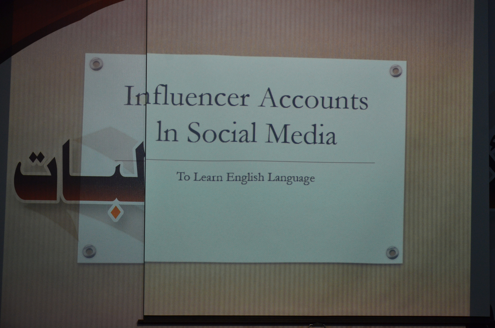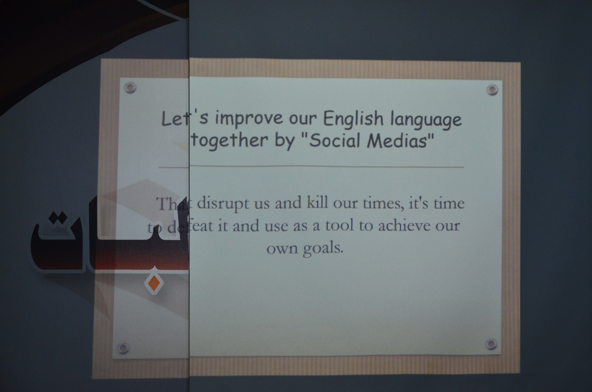 نظم قسم اللغة الإنجليزية بكلية العلوم والدراسات الإنسانية بالأفلاج( شطر الطالبات) يوم الأربعاء ١٤٤٠/٢/٢٩ هـ الساعة التاسعة صباحاً في مسرح الكلية برنامج بعنوان " الحسابات الفعالة على مواقع التواصل " تحت إشراف الاستاذة رفعة عويس و الاستاذة نورة العجالين ، جاء هذا البرنامج في طور تسخير التقنية لخدمة العلم إذ أن اللغة قد تُكتسَب من هذا المجال و منه أيضاً يتم تطويرها ، بعدها تناول الأخطاء الشائعة في تعلم اللغة الإنجليزية وكيفية تجاوزها .