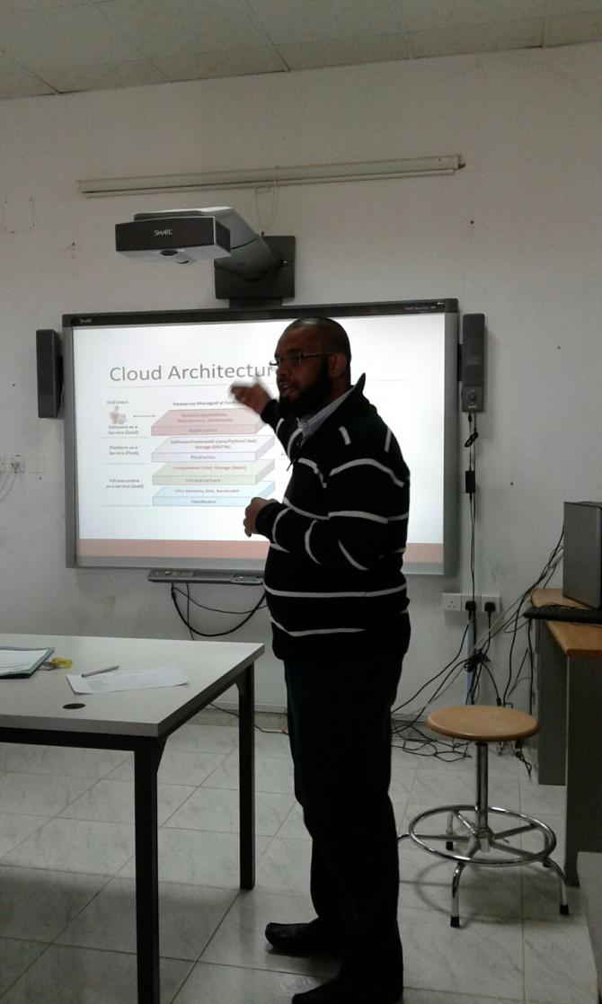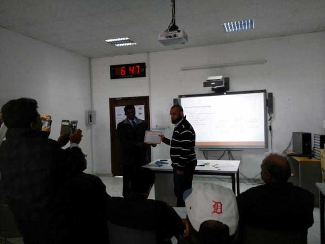 من الأنشطة العلمية لقسم علوم الحاسب والمعلومات وضمن السمنارات الدورية للقسم للعام الدراسي 1436/1437 هـ ، قدم الأستاذ/ مجتبي غلام مغيث السمنار العلمي الثالث بعنوان " الحوسبة السحابية وتحديايتها Cloud Computing & its Challenges
