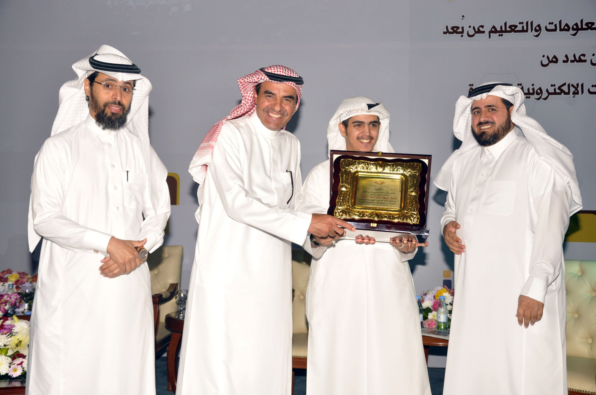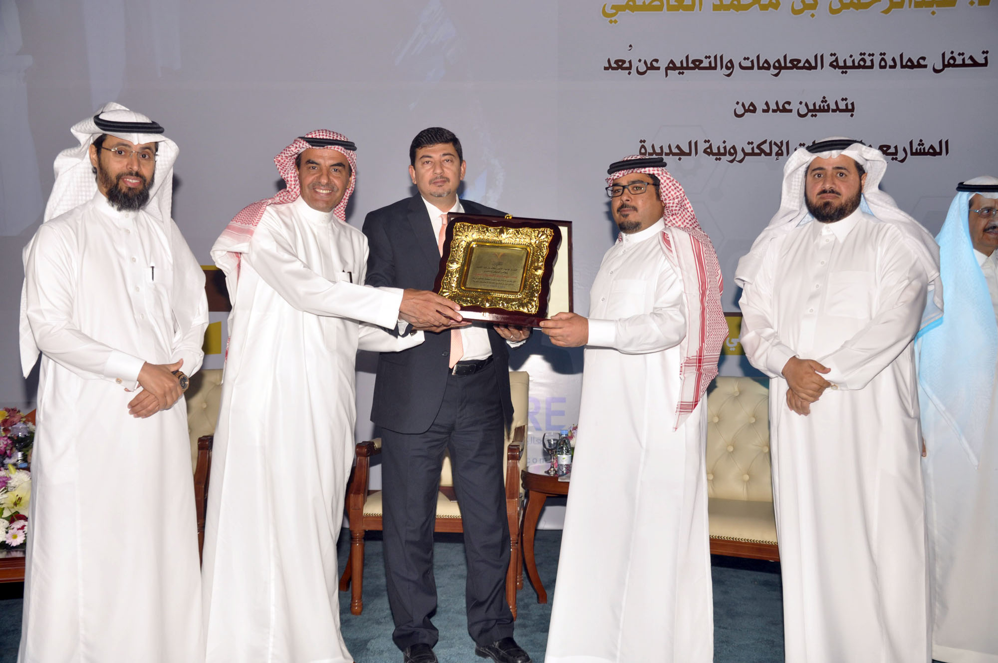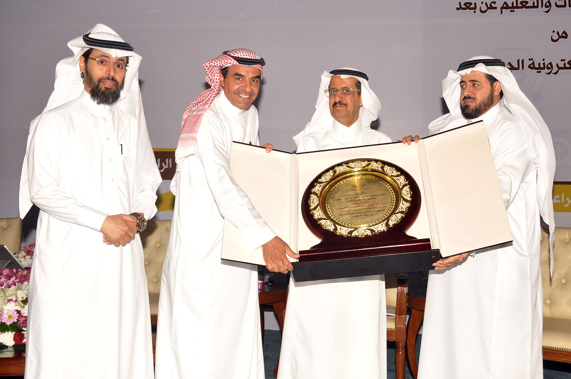 وفي ختام الحفل قام معالي مدير الجامعة بتكريم مدير عام برنامج التعاملات الإلكترونية الحكومية "يسِّر" الدكتور عبدالرحمن بن سليمان العريني والمشرف العام على المركز الوطني للتصديق الرقمي الدكتور فهد بن عبدالله الحويماني، بالإضافة إلى تكريم رعاة الحفل وهم شركة المعمر لنظم المعلومات "الراعي الماسي"، والرعاة الذهبيون وهم شركة شور العالمية للتقنية وشركة أنظمة الكمبيوتر السعودية والشركة الفنية لتوطين التقنية، والراعي الفضي شركة العجو وشركة لمسات.