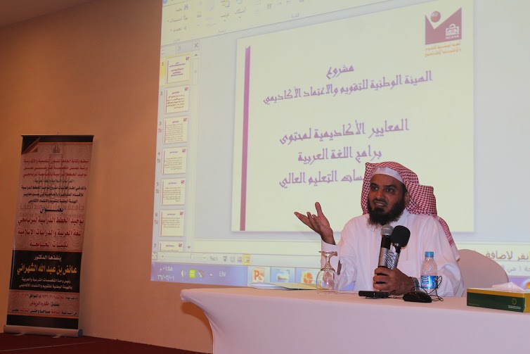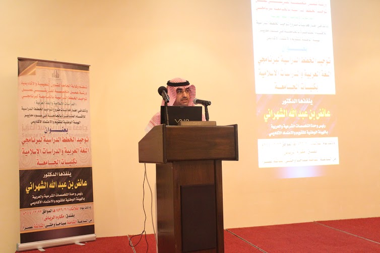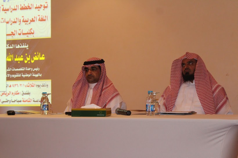 من جهته أوضح المشرف على المشروع الدكتور خالد بن هدوب المهيدب أن هذه الورشة هي باكورة العمل في سبيل توحيد الخطط الدراسية لبرنامجي اللغة العربية والدراسات الإسلامية، وتتكون الورشة من ثلاث جلسات أولاها حول المعايير اللازمة لبناء الخطط الدراسية وتطويرها، وتتحدث الجلسة الثانية عن مشروع معايير محتوى برنامج الدراسات الإسلامية، وثالث الجلسات يناقش مشروع معايير محتوى برنامج اللغة العربية.