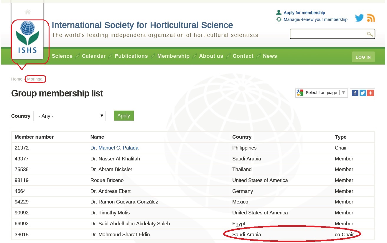 فإنه قد تم تكريم قسم الأحياء ممثلاً في الدكتور/ محمود شرف الدين الأستاذ المشارك بالقسم وذلك من قبل الجمعية الدولية ISHS، نظراً للمشاركة المتميزة ضمن اللجنة العلمية للمؤتمر الدولي الأول للمورينجا، المنعقد بدولة الفلبين.