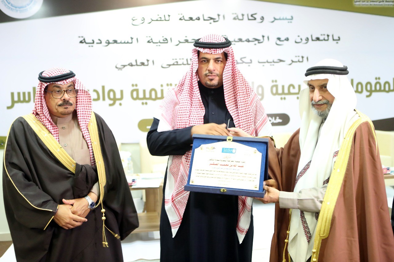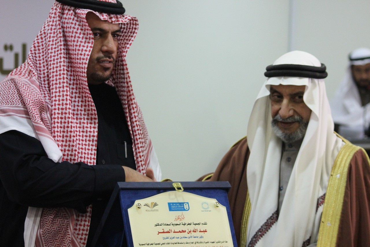 وفي أثناء هذا اللقاء العلمي تم تكريم محافظ وادي الدواسر ووكيل جامعة الأمير سطام للفروع وادارة العلاقات العامة والإعلام بوكالة الفروع من قِبل الجمعية الجغرافية السعودية على استضافتهم اللقاء العلمي والحضور . كما قدم وكيل الجامعة للفروع هدية تذكارية لرئيس الجمعية الجغرافية السعودية.