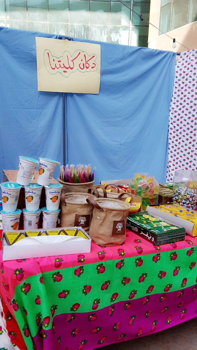 ديوانية المجلس الطلابي ، ركن الوراق لقسم اللغة العربية ، سوق زمان لقسم الاقتصاد المنزلي ، الألعاب الشعبية لقسم الرياضيات ، بالإضافة لخيمة النشامى ودكان كليتنا .