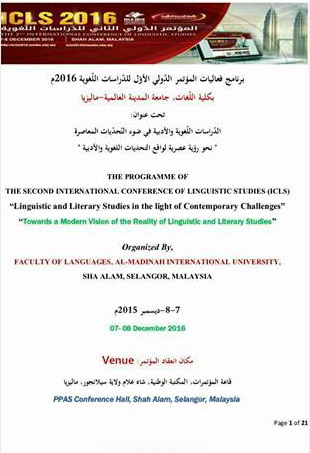 شارك الدكتور مسفر بن محماس الكبيري المشرف على كليات الجامعة بالأفلاج والأستاذ المشارك في اللغويات العربية التطبيقية بورقة علمية في المؤتمر الدولي الثاني للدراسات اللغوية الذي نظمته جامعة المدينة العالمية بماليزيا في الفترة من 7-8 / 12 / 2016م.