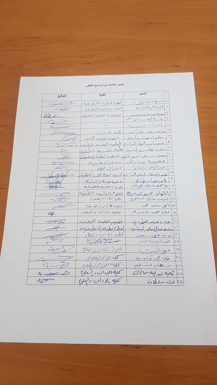 انطلاقًا من مفهوم التعاون المشترك بين كليات الجامعة فقد تم عقد ورشة عمل الأثنين الموافق ٢٠ /٦ بعنوان الخدمات الالكترونية المتاحة للطلاب والية استخدامها من عمادة القبول والتسجيل بمسرح كلية العلوم الطبية التطبيقية بوادي الدواسر و قام بالورشة ا. سارة فهد و ا. هيا علي ا.هند صقر من شؤون القبول والتسجيل بالوكاله الجامعه للفروع وقد تم التعريف بجميع الخدمات الالكترونية والخاصة بالقبول والتسجيل بجامعة الامير سطام بن عبد العزيز.