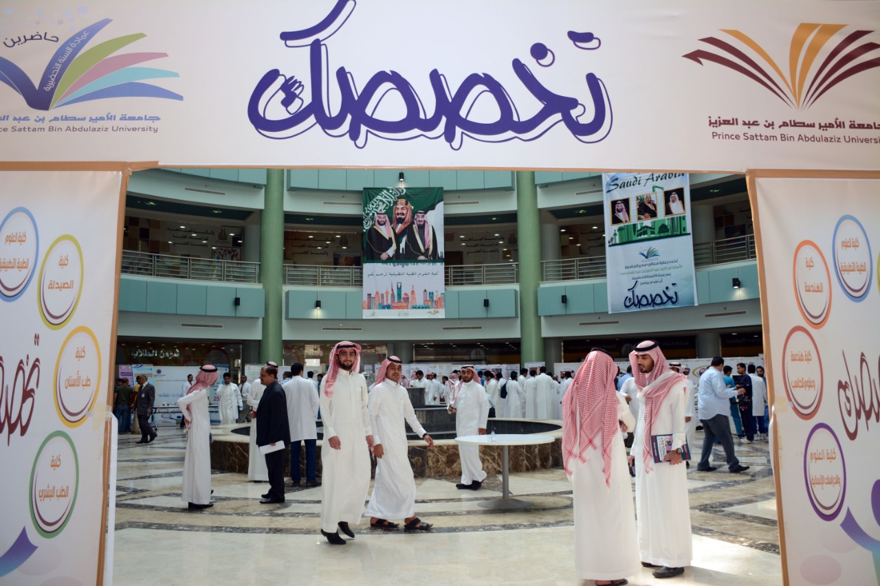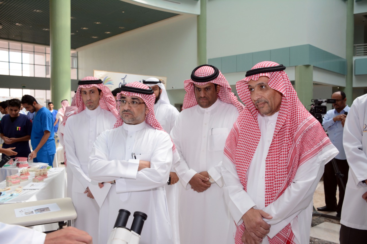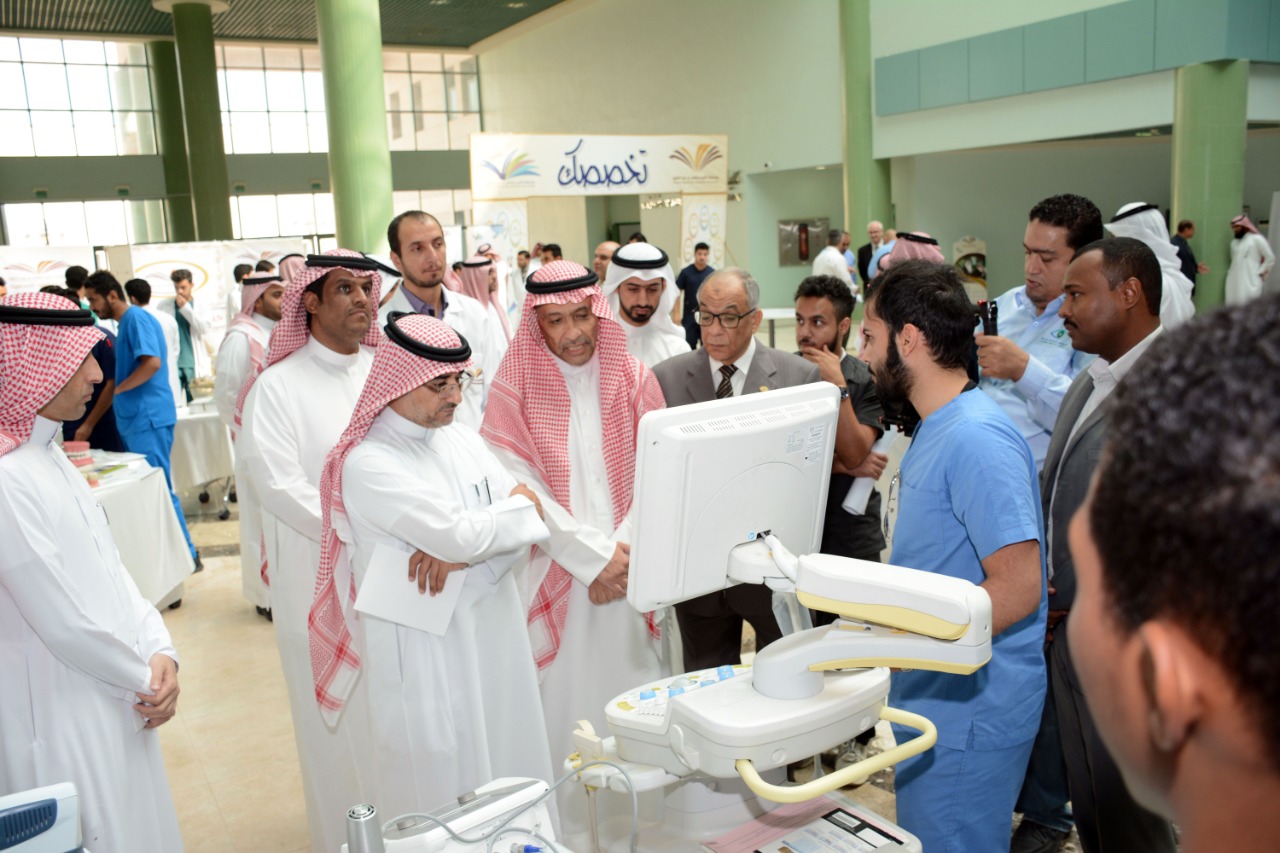 نيابة عن معالي مدير الجامعة الدكتور عبد العزيز بن عبد الله الحامد دشن سعادة وكيل الجامعة للدراسات العليا والبحث العلمي الدكتور عبد الرحمن بن إبراهيم الخضيري فعاليات برنامج ( تخصصك) بحضور عدد من أصحاب السعادة عمداء الكليات والعمادات المساندة ووكلائها ، اليوم الاثنين :27 /2 /1440هـ في بهو كلية العلوم الطبية التطبيقية .