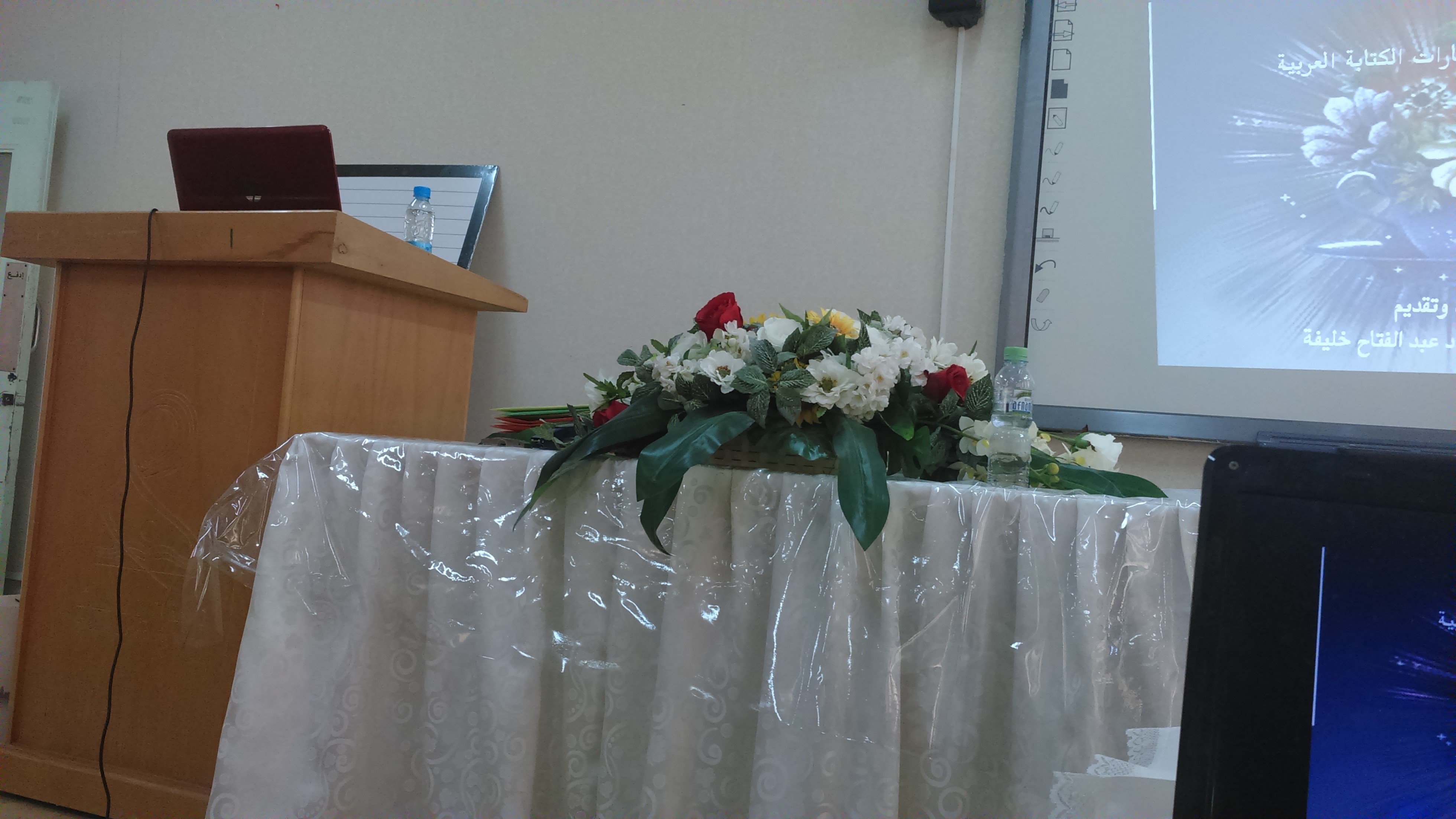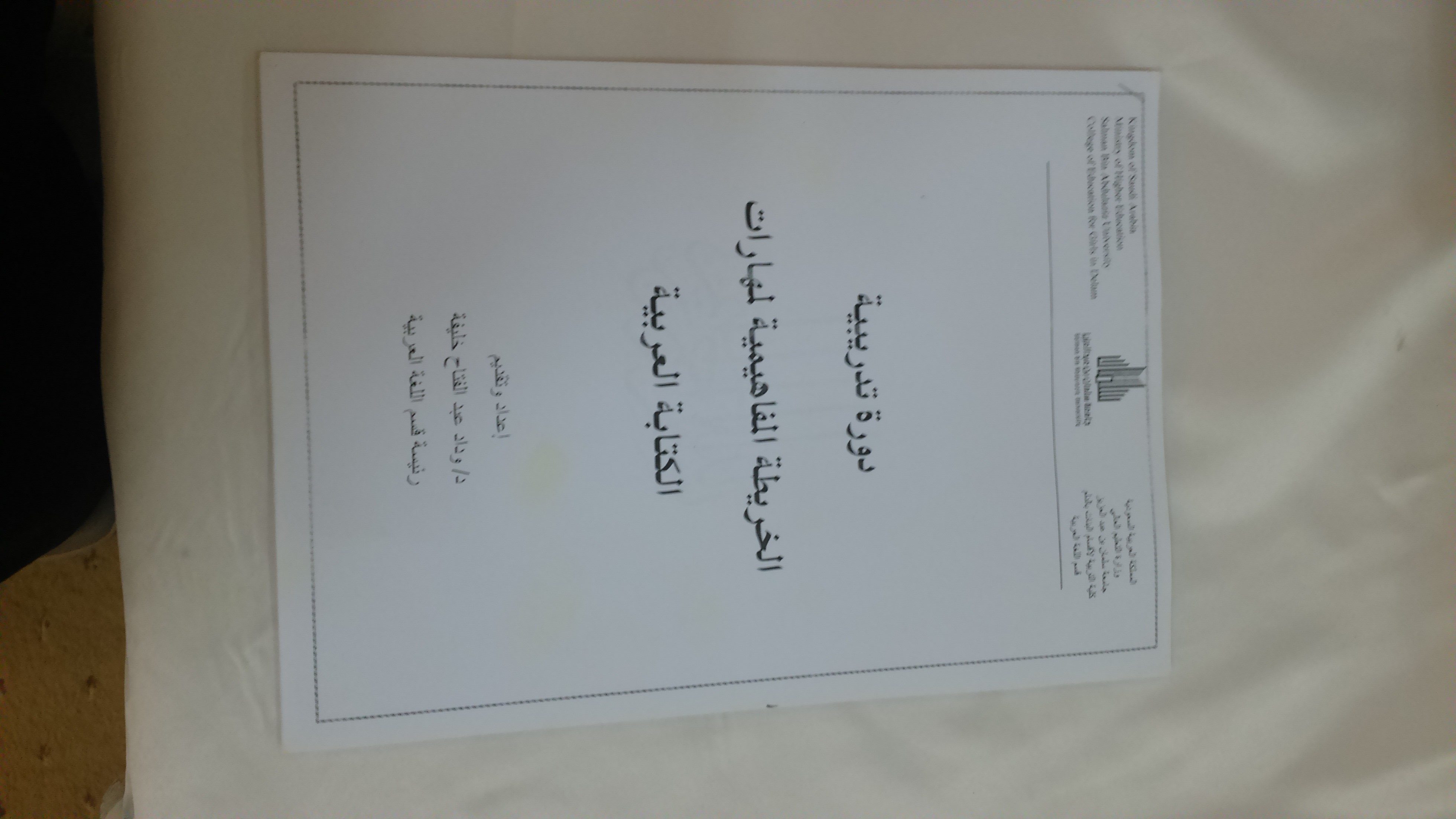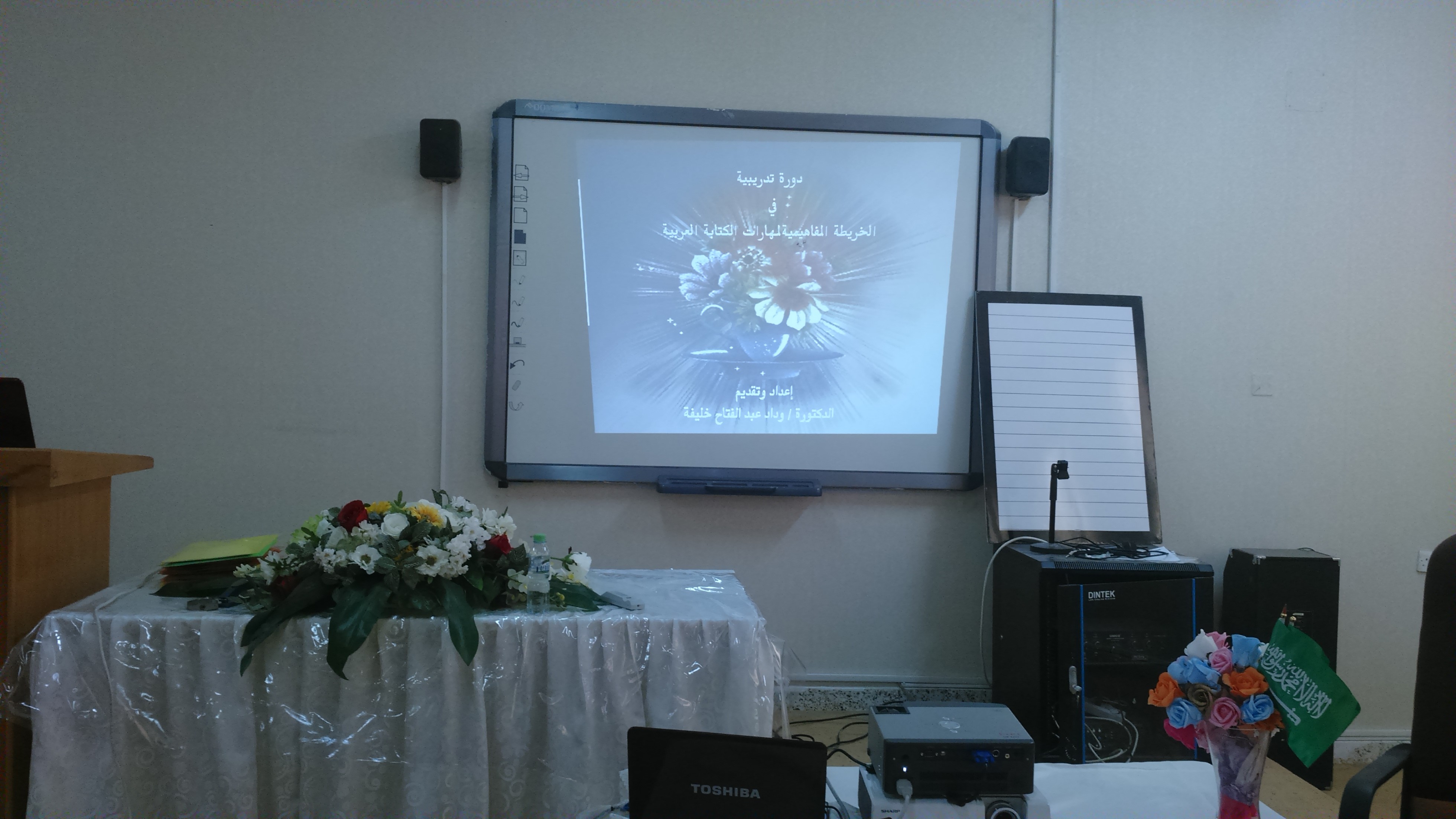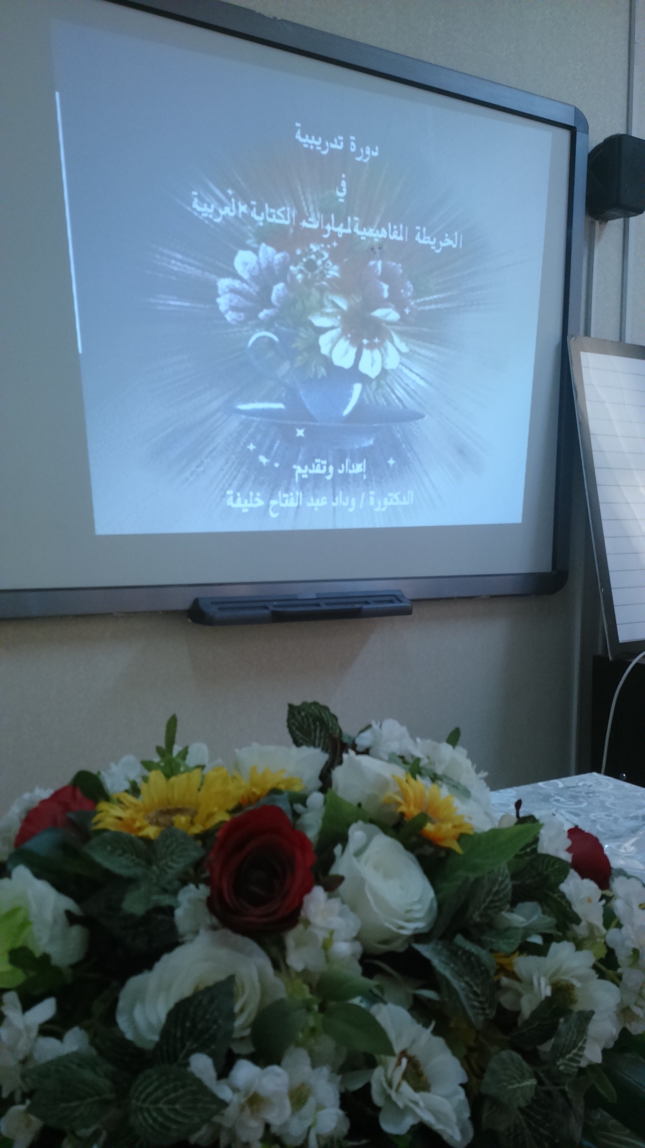 نظمت وحدة التطوير والتدريب والجودة بالتعاون مع وحدة العلاقات العامة والإعلام دورة تدريبية بعنوان (الخريطة المفاهيمية لمهارات الكتابة العربية) إعداد وتقديم د. وداد عبد الفتاح أستاذ مساعد ومشرفة قسم اللغة العربية ومدرب محترف ومعتمد من أكاديمية المعلم للتدريب والاستشارات ومركز التفكير المساند للتدريب ومدرب معتمد من FI TRAINER EMBERSHIP ثروة العقل الماليزية. يوم الاثنين الموافق 17/6/1436هـ الساعة العاشرة صباحًا بقاعة الخنساء بالكلية .