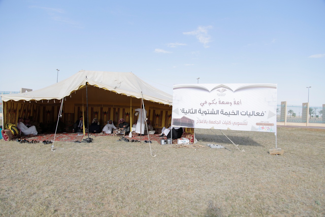 وشهد ملتقى الخيمة الشتوية الذي تنظمه كليات الجامعة بالأفلاج للعام الثاني أمس الثلاثاء وكيل عمادة شؤون الطلاب للأنشطة الطلابية الدكتور: لفاي السلمي، ودار خلال الزيارة حوار أخوي إيجابي يهدف إلى كسر الروتين بالجمع بين الترفيه والمعلومة، وشهد اللقاء حضور وكيل كلية المجتمع للشؤون التعليمية والأكاديمية الدكتور: فهد القحطاني وعدد من أعضاء هيئة التدريس والموظفين، وكان للقهوة العربية وبعض الموروثات الشعبية حضور لافت.