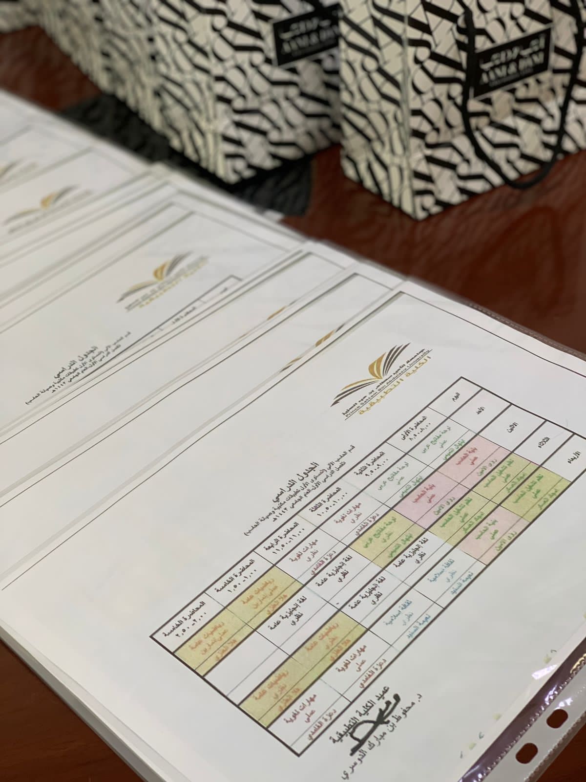 وبحضور كلآ من الأستاذة /ناهد أبو زيد مساعدة رئيس قسم الحاسب الآلي ومشرفات شؤون الطالبات بالكلية الإستاذة /فوزية سفياني والأستاذة /هيا الذياب وحضور استاذة لغة الإشارة بشرى المطيري . حيث أطلع الطالبات على جداولهن الدراسية وآلية الدراسة بالكلية وأنظمتها ،