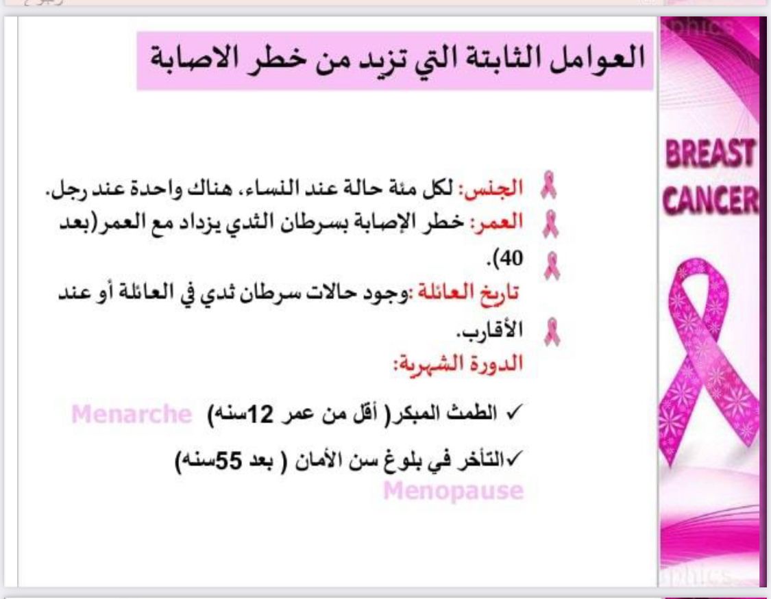 هدفت الفعالية إلي رفع مستوى الوعي العام بمرض سرطان الثدي وأهمية الكشف المبكر وأكثر الفئات عرضة للإصابة به. وقد تم تقديم ثلاث محاضرات توعوية المحاضرة الأولى: "الكشف المبكر لسرطان الثدي: «الكشف المبكر ينقذ حياة»" قدمتها سعادة: الدكتورة عطيات محمد حسن (أستاذ مساعد بقسم التمريض)، و أهم ما تناولته: إرشادات الكشف المبكرلسرطان الثدي، الفحص الذاتي للثدي، علامات ومراحل المرض ومعدلات انتشاره. المحاضرة الثانية: «عوامل الخطورة للإصابة بسرطان الثدي والعلاج» قدمتها سعادة: الدكتورة سحر علي عبدالمحسن (أستاذ مشارك بقسم التمريض) و أهم ما تناولته: العوامل التي تزيد والتي تقلل من خطر الاصابة بسرطان الثدي، طرق العلاج المختلفة. المحاضرة الثالثة: «الغذاء والسرطان» قدمتها سعادة: الدكتورة ماجدة محمود الجميل (أستاذ مشارك بقسم التمريض) و أهم ما تناولته: العلاقة بين الغذاء والسرطان، الغذاء الصحي والضار وتقديم بوستر بعنوان غذاؤك هو حياتك. أيضا تم المشاركة ببرشور للتوعية بالكشف المبكر لسرطان الثدي من قبل الدكتورة أزهار عبدالفتاح (أستاذ مساعد بقسم التمريض). وقد لاقت الفعالية استحسان وترحيب من الحضور. تم التنسيق والترتيب للفعالية من قبل مشرفة وحدة العمل الطلابي وخدمة المجتمع بالكلية الدكتورة عطيات محمد حسن بالتنسيق مع الدكتورة إيمان عبدالباقي مشرفة الأنشطة الثقافية والإجتماعية بكلية التربية.