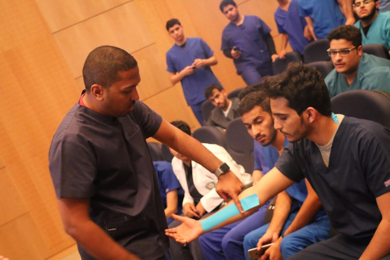 أقام نادي العلاج الطبيعي "أقسام الطلاب" بكلية العلوم الطبية التطبيقية يوم الاحد الموافق 1438/3/5 هـ محاضرة بعنوان "اللاصق الطبي" قدمها الاخصائي / ماهر الفرحان.