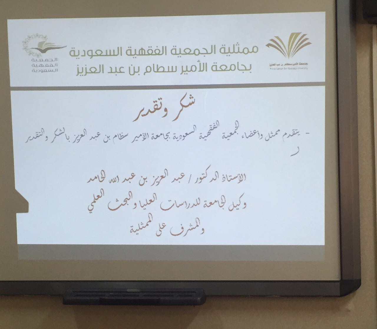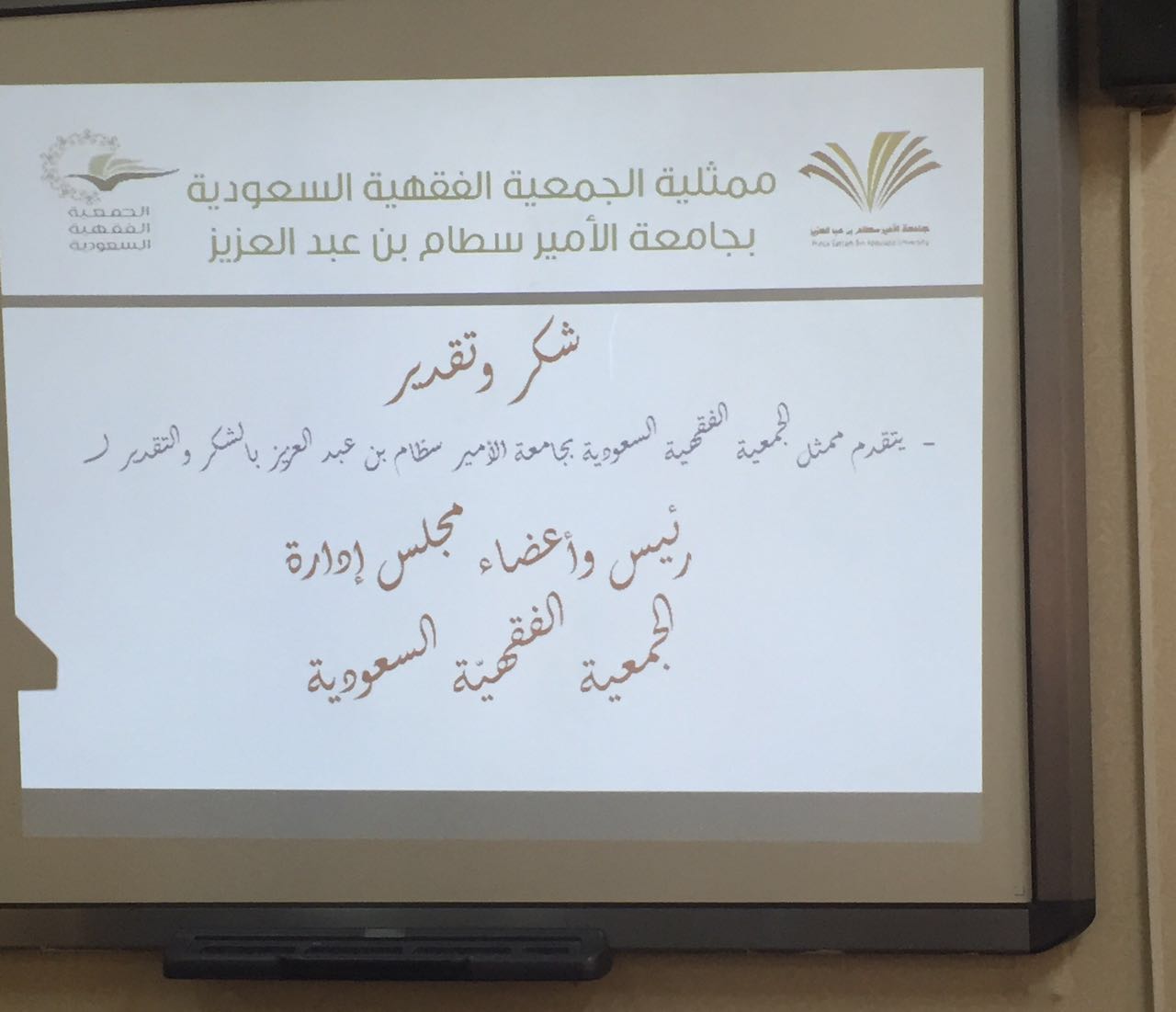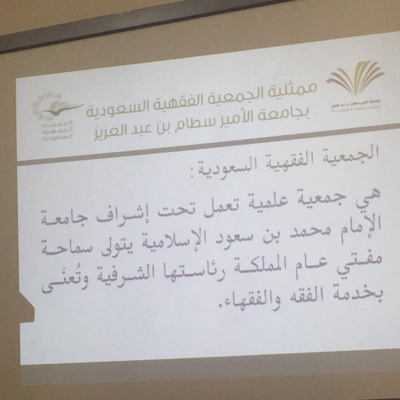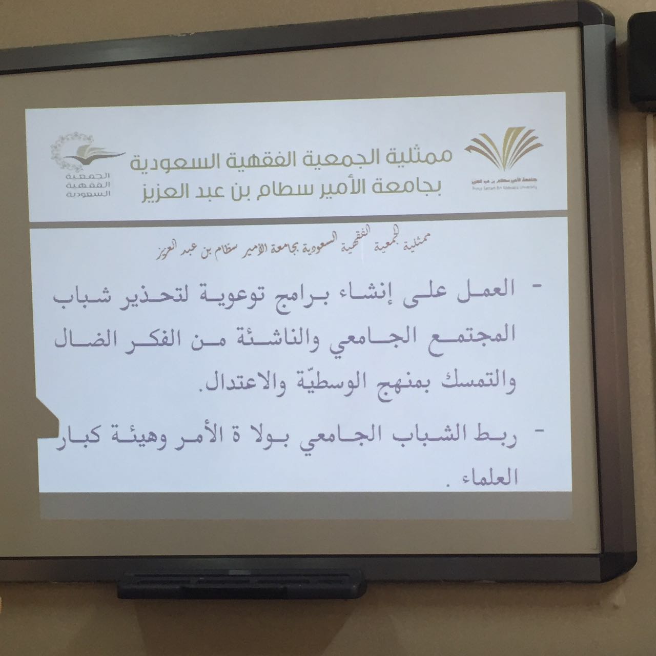 بدأت ممثلة اللجنة النسائية لممثلية الجمعية الفقهية د.ابتهال المبرد بتقديم الشكر والتقدير لمعالي مدير الجامعة وسعادة وكيل الجامعة للدراسات العليا والبحث العلمي على افتتاح الجمعية والإشراف عليها ، تلي ذلك مقدمة تعريفية للحضور عن الجمعية الفقهية السعودية : بأنها جمعية علمية تعمل تحت إشراف جامعة الإمام محمد بن سعود الإسلامية يتولي سماحة مفتي عام المملكة رئاستها الشرفية وتعني بخدمة الفقه والفقهاء ، وقد صدرت موافقة كريمة من معالي مدير الجامعة د.عبدالرحمن العاصمي بتاريخ 4/9/1436هـ على إنشاء ممثلية الجمعية الفقهية بالجامعة ، والتي تستهدف برامج وفعاليات مهمة تحقق بعداً فقهياً وشرعياً لمجتمع الجامعة كما تستهدف آفاقا أرحب من الأفكار مثل : تأسيس النادي الفقهي بالجامعة والذي يتبع عمادة شؤون الطلاب ويهدف إلى نشر الوعي بالفقه الأخلاقي والوسطي بين منسوبي الجامعة ، تنظيم الندوات والدورات وورش العمل التدريبية بالتعاون مع عمادة خدمة المجتمع والتعليم المستمر، ومعهد الأمير عبد الرحمن بن ناصر للدراسات الاستشارية، التفاعل مع برنامج (معرفة) التابع لوكالة الجامعة للشؤون التعليمية والأكاديمية، لنشر البرامج الفقهية المقامة في الجامعة ومجتمعها، نشر قرارات وفتاوى العلماء التي تدعو للوسطية في داخل المجتمع الجامعي ، العمل على إنشاء برامج توعوية لتحذير شباب المجتمع الجامعي والناشئة من الفكر الضال والتمسك بمنهج الوسطيّة والاعتدال، ربط الشباب الجامعي بولاة الأمر وهيئة كبار العلماء، دراسة النوازل والمستجدات الفقهية بمشاركة أساتذة الفقه بالجامعة،العمل على إنتاج بحوث فقهية ذات صلة بمجتمع الجامعة.