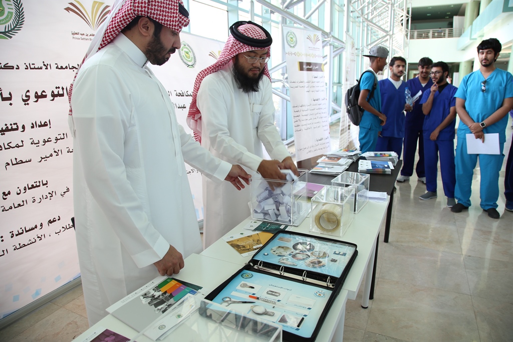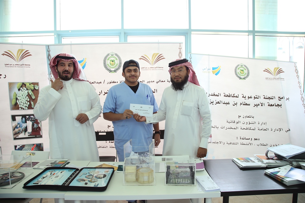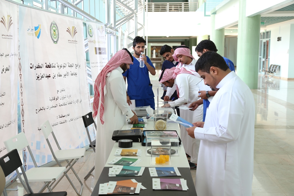 أقامت اللجنة التوعوية لمكافحة المخدرات بالجامعة وبمساندة عمادة شؤون الطلاب معرضاً توعوياً تثقيفياً بأضرار المخدرات في مبنى كليتي إدارة الأعمال والعلوم الطبية التطبيقية، وذلك صباح هذا اليوم الأربعاء الموافق 26-2-1439 هـ، وأقيم المعرض بمتابعة مباشرة من سعادة عميد شؤون الطلاب ورئيس اللجنة التوعوية لمكافحة المخدرات بالجامعة الدكتور/ ثلاب بن عبدالله الشكرة.