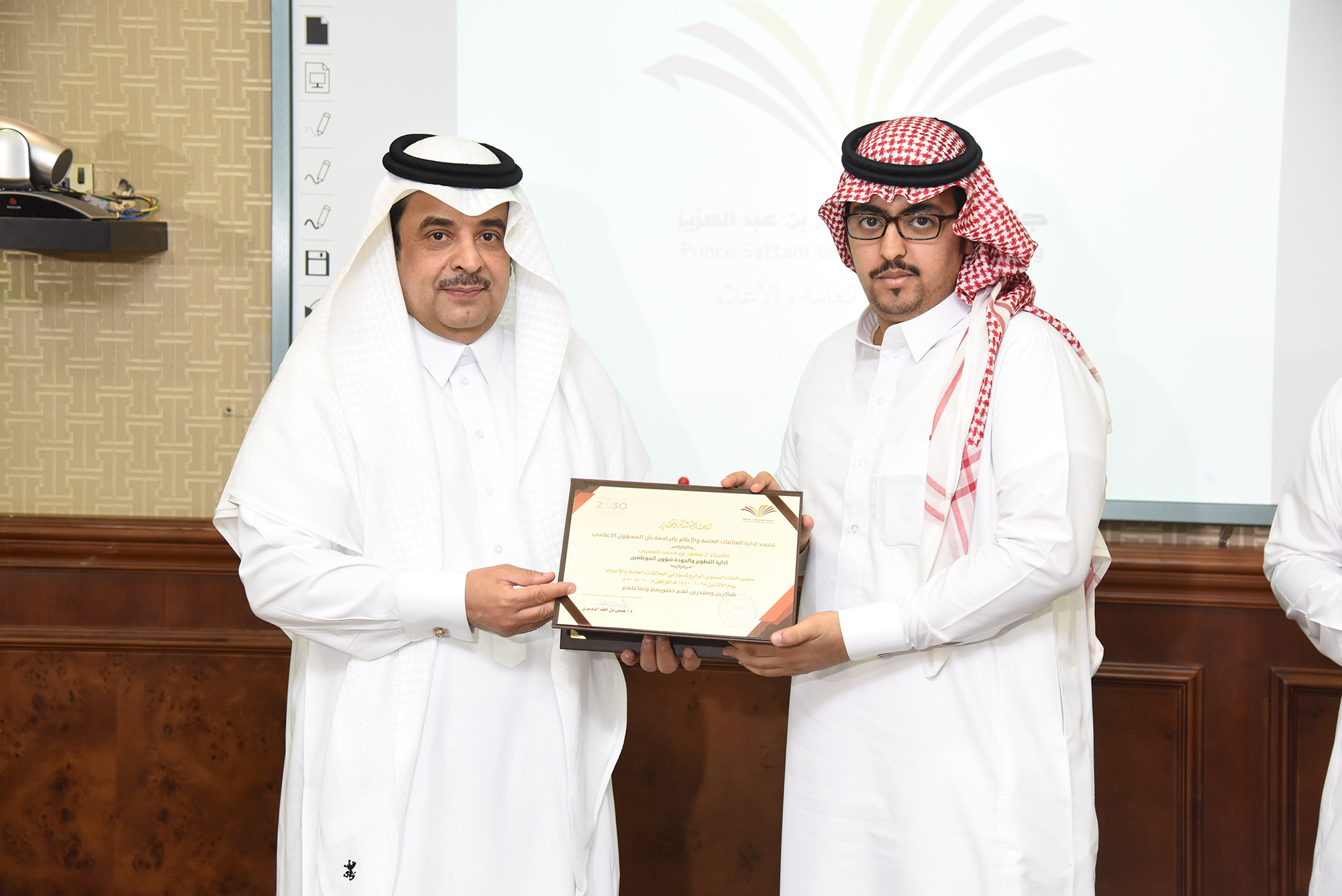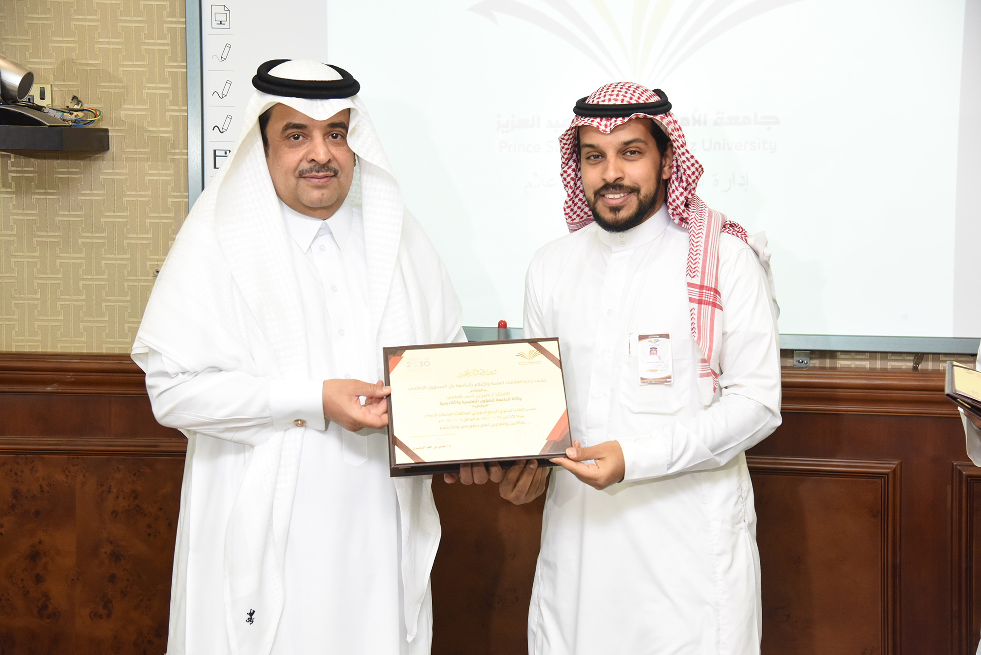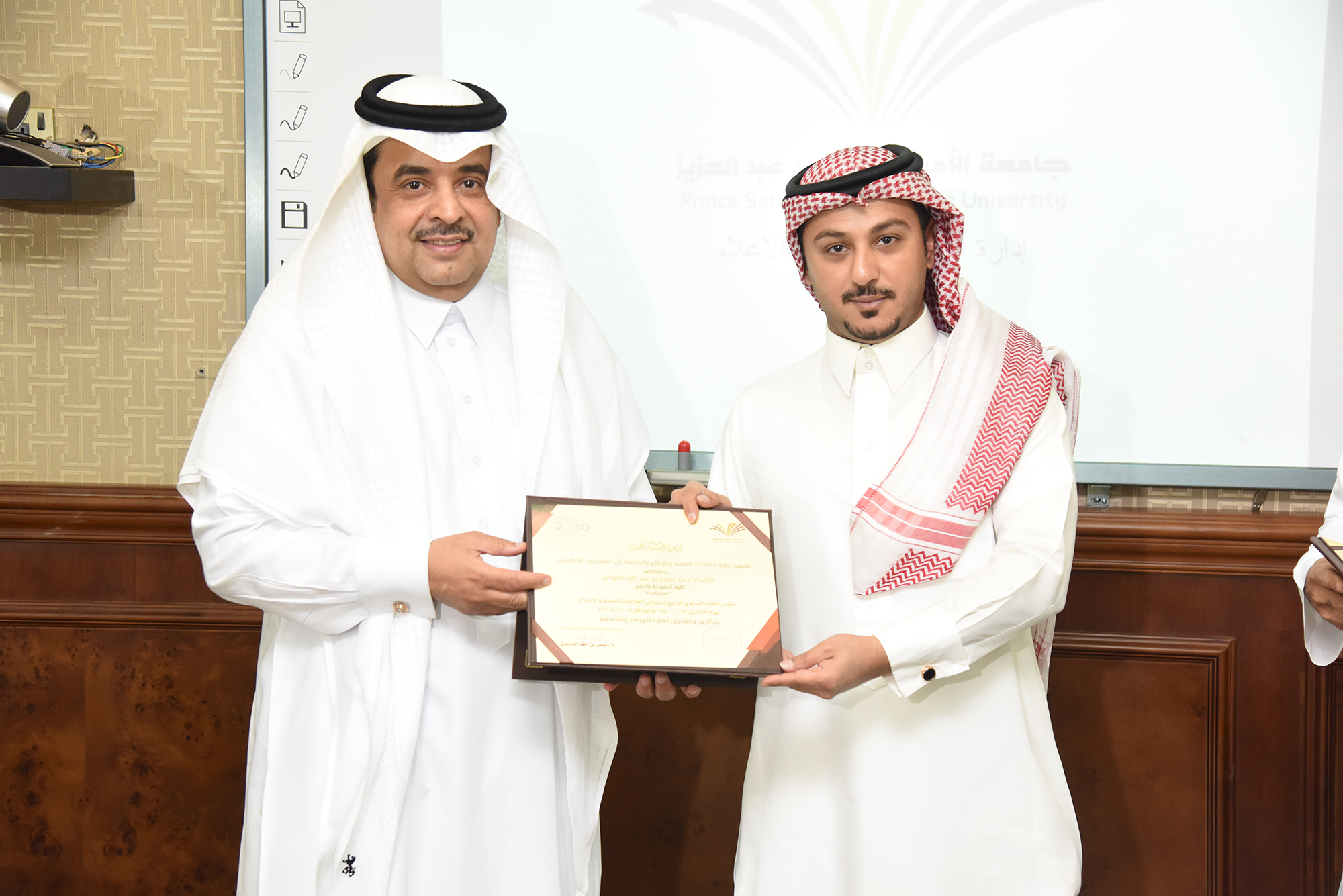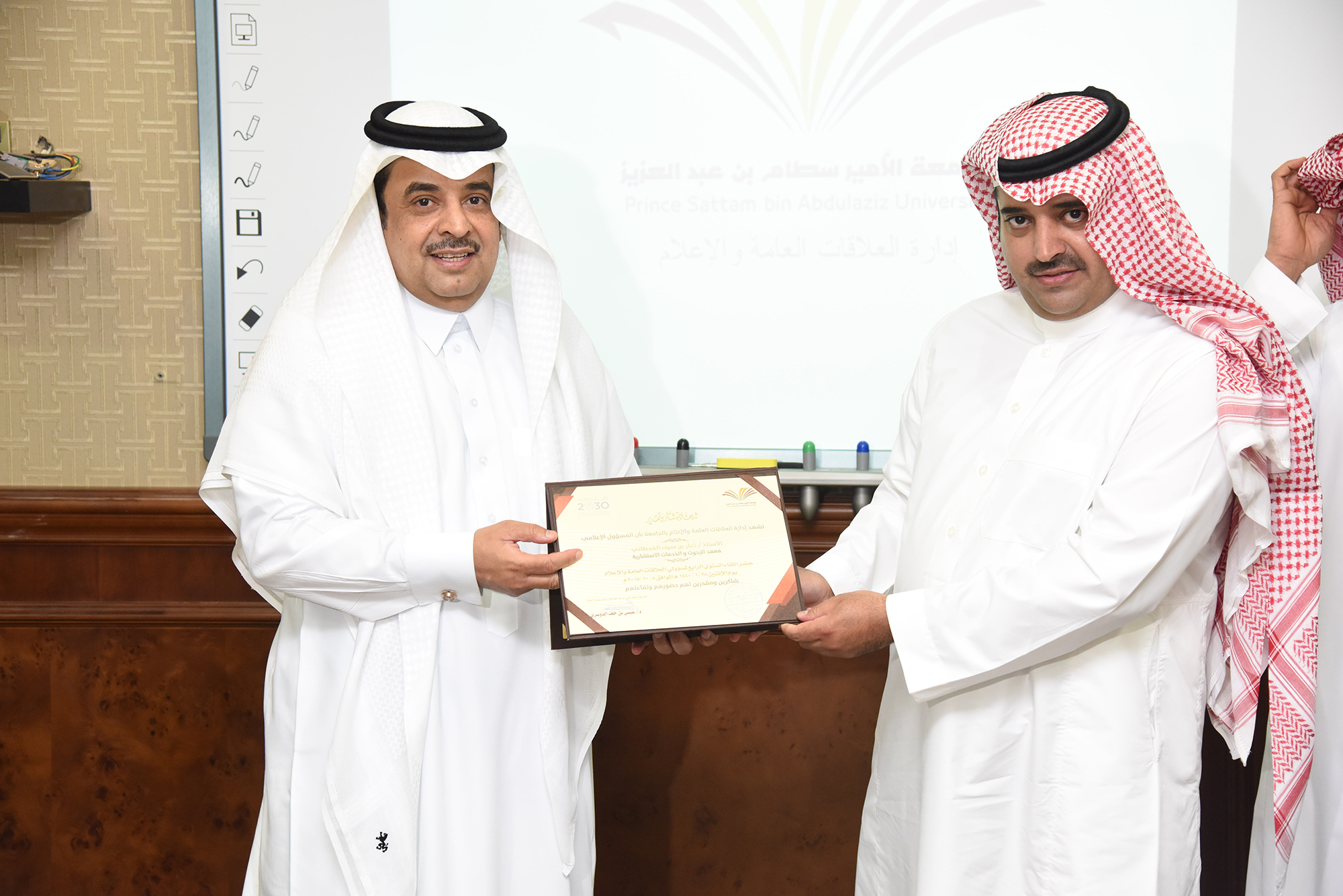 وقد بدأ اللقاء بكلمة المشرف على العلاقات العامة والإعلام الدكتور عيسى بن خلف الدوسري الذي رحب فيها بالحضور وأوضح حرص إدارة العلاقات العامة والإعلام على مثل هذا اللقاءات للاستماع لوجهات النظر حول الموضوعات والقضايا الإعلامية في الجامعة وفتح قنوات تواصل بين الجميع ، كما ذكر أنه سيكون هناك تكريم لأفضل مسؤول إعلامي أسوة بما تم في العام الماضي وفق ضوابط ومعاير سوف تطرح وتناقش أمام الجميع لتقيمها واعتمادها بمشاركة جميع مسؤولي الإعلام في الجامعة، وأبان الدوسري أن هذا التكريم يساعد على خلق بيئة تنافسية ايجابية بين الزملاء والذي بلا شك سينعكس على تطوير إعلام الجامعة وسيساعد على إبراز كافة الجهود التي تبذلها الكليات و العمادات والإدارات في الجامعة بعد ذلك ألقى الأستاذ عبد الله التميمي عرضاً تناول فيه أهم معايير اختيار المسؤول الإعلامي المميز وآلية النشر في صحيفة جامعتي الالكترونية وحسابات التواصل الاجتماعي للجامعة ثم قدم الأستاذ حسن الجنيب عرضاً متميزاً حول التصوير الصحفي وأبرز مقومات نجاح المصور وتناول كذلك أهم الوسائل التي تساعد المصور على إبراز الصورة الخبرية بالكيفية التي تحقق أهداف الخبر ، بعد ذلك فُتح المجال للنقاش وطرح الاستفسارات حول الإعلام في الجامعة بشكل عام حيث تم التوصل إلى مجموعة من التوصيات سوف تساهم في تطوير العمل الإعلامي في الجامعة وتجويده ، ثم اختتم اللقاء بتكريم الحضور وتسليم شهادات الشكر للجميع .