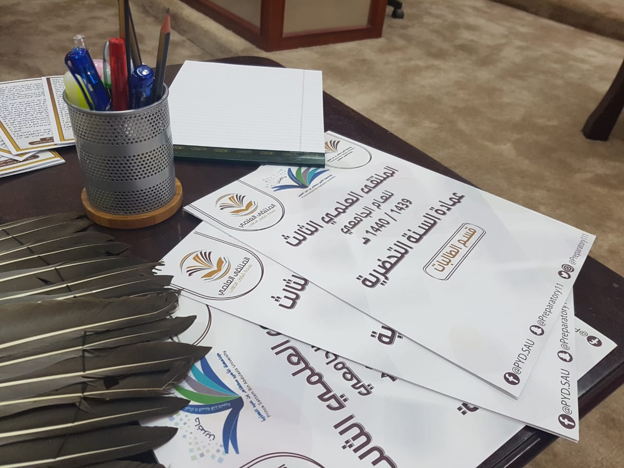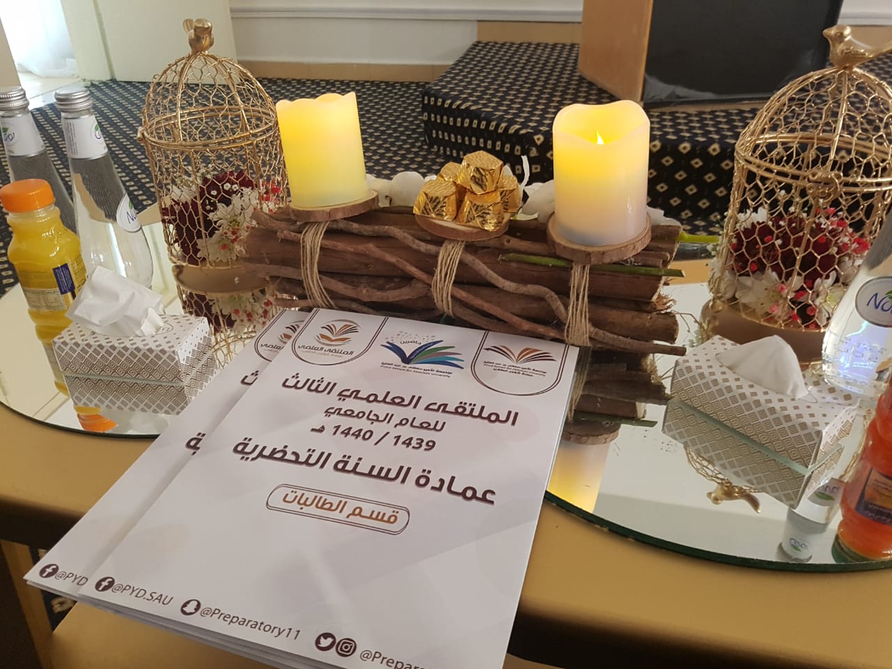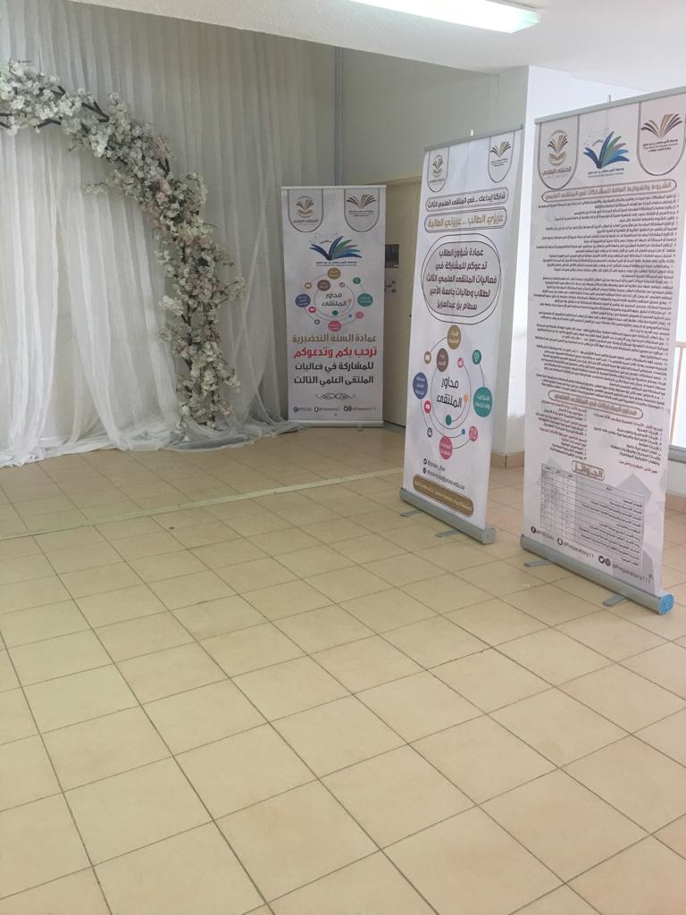 مسك الختام في كل عام اللقاء التحضيري للملتقى العلمي الثالث بعمادة السنة التحضيرية شطر الطالبات والذي أُقيم يوم الاثنين الموافق١٣/ ٦/ ١٤٤٠ هـ في مبنى ج، برعاية وإشراف سعادة وكيلة العمادة لشؤون الطالبات الدكتورة أمل بنت صالح الشمراني وبحضور سعادة وكيلة شؤون الطلاب الدكتورة دلال بنت خالد المطرفي المشرفة على الملتقى العلمي الثالث حيث بدأ اللقاء باستعراض مجلة تشتمل على المراحل التي مر بها الملتقى العلمي الثالث بالعمادة من الدعاية والإعلان والتسجيل واللقاء التعريفي والدورات التدريبية ولجان التحكيم مرحبين بالحضور في مكتبة عمادة السنة التحضيرية لاستعراض بعض المشاركات في جميع المحاور ومنها تم التوجه إلى مسرح العمادة استهل بالسلام الملكي ثم آيات عطرات من الذكر الحكيم يلي ذلك كلمة من سعادة وكيلة العمادة مرحبه بضيوفها الكرام متحدثه عن فعاليات الملتقى العلمي الثالث بالعمادة مثنيه على جهود أسرة الملتقى يلي ذلك ألقت سعادة وكيلة عمادة شؤون الطلاب والمشرفة على الملتقى العلمي الثالث كلمة معبرة عن الملتقى العلمي الثالث وأثره ومدى أهميته حيث أثنت وشكرت على الجهود المبذولة للملتقى، ومن ثم مسكها إعلان الفائزات في جميع المحاور الخمس متمنين لهم التوفيق والسداد