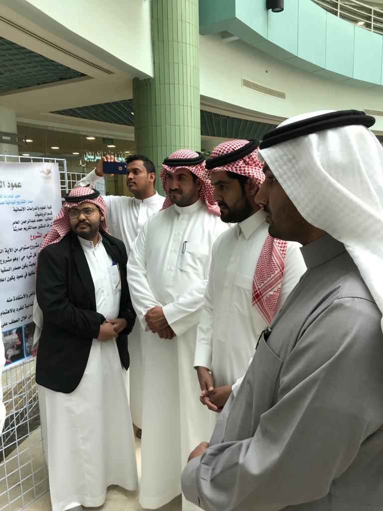 وكذلك ألقى سعادة الدكتور خالد بن ناصر العاصم كلمة عمادة شؤون الطلاب نوه فيها بجهود الكلية في إنجاح الملتقى العلمي وحث الطلاب على المزيد من العطاء والإبداع. ثم تلى ذلك عرض عينات من مشاركات الطلاب الفائزة بالمراكز الاولى في مجال الاختراع والابتكار ومجال الافلام التوعوية، ومع انتهاء العروض تم تكريم الطلاب المتميزين واختتم الملتقى التحضيري بزيارة المعرض الذي أقيم في بهو الكلية حيث قدم الطلاب مختصرا لأعمالهم في شتى محاور الملتقى وتفاعلوا مع أسئلة واستفسارات الحضور الكريم.