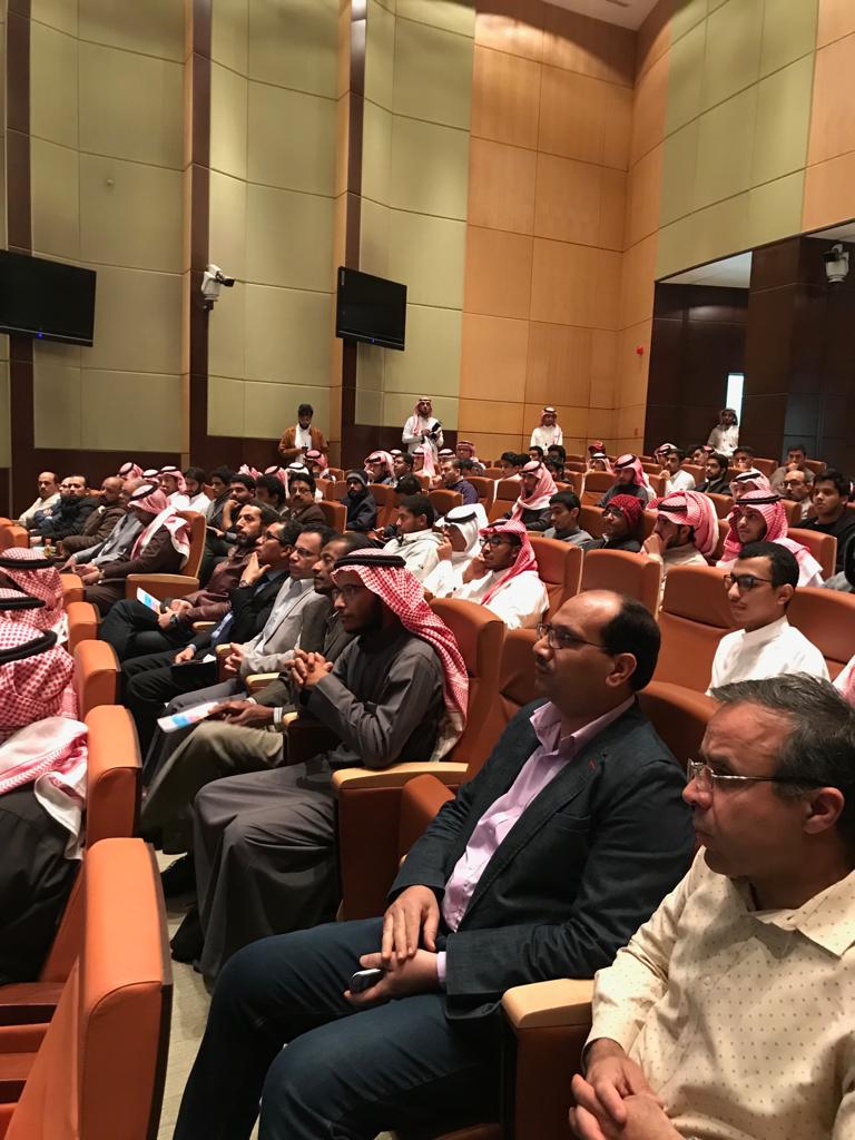 واستهل اللقاء بآيات بينات من الذكر الحكيم بعد الترحيب بالحضور الكريم، تلا ذلك عرض فيديو وثائقي حول انشطة وإسهامات الكلية في مجالات متنوعة شملت البحث العلمي والابتكارات ومجال الإبداع والتوعية. ومن ثم تفضل سعادة عميد الكلية الدكتور عبد الرحمن الحارثي بكلمة رحب فيها بالضيوف من عمادة شؤون الطلاب وبالحضور الكريم وشدد على أهمية البحث العلمي والابتكار، ونوه بدعم الوزارة والجامعة في إقامة مثل هذه الملتقيات العلمية لتحفيز الطلاب على المشاركة والإسهام في الرقي بالبحث العلمي وفي خدمة المجتمع.
