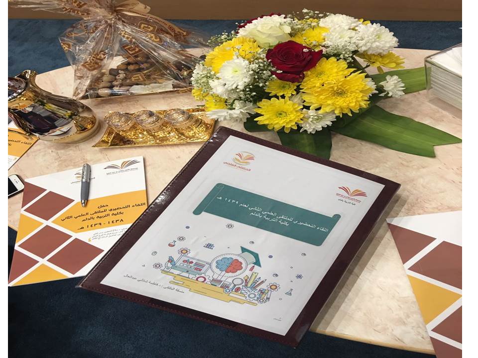 تحت رعاية سعادة عميدة كلية التربية بالدلم الدكتورة/مليحة بنت محمد القحطاني و بحضور اللجنة العليا للملتقى ممثلة في سعادة الدكتورة/ دلال بنت خالد المطرفي أقيم اللقاء التحضيري للملتقى العلمي الثاني بكلية التربية بالدلم وذلك في يوم الأحد الموافق 25/5/1439هـ في تمام الساعة العاشرة صباحاً بمسرح الكلية ,وبحضور عدد من الضيوف ومنسوبات الكلية من أعضاء هيئة التدريس والموظفات,والطالبات. حفل اللقاء بالعديد من الفقرات المتنوعة ومن أبرزها؛ عرض وثائقي عن فعاليات الملتقى و أبرز إنجازات الكلية وجهود القيادة البارزة و منسقة الملتقى والمجالس الطلابية والمحكمين لتوفير الإمكانيات وحث الطالبات على المشاركة و مواجهتهم للتحديات، و عرضت بعض المشاركات الفائزة، وتم كذلك تكريم الطالبات إجمالاً واللجان المنظمة للملتقى وفريق عمل وحدة العمل الطلابي.