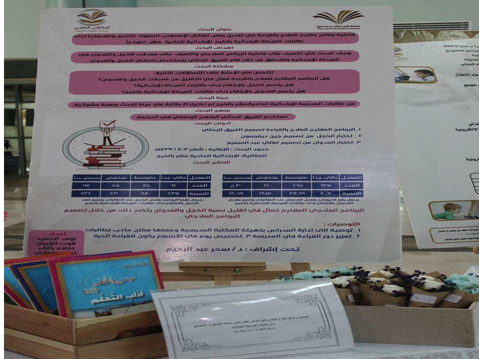 هذا وقد أختتم اللقاء بافتتاح المعرض وعرض مشاركة الطالبات حسب المحاور لتحقيق الهدف، كما اتضحت فيه روح التعاون والتنافس بين الطالبات وإبراز قدراتهن وإبداعاتهن، مثمنين لهن مجمل الجهود المبذولة في سبيل خدمة العجلة التعليمية و صقل المواهب وتذليل العقبات متمنين لهن التوفيق والسداد.