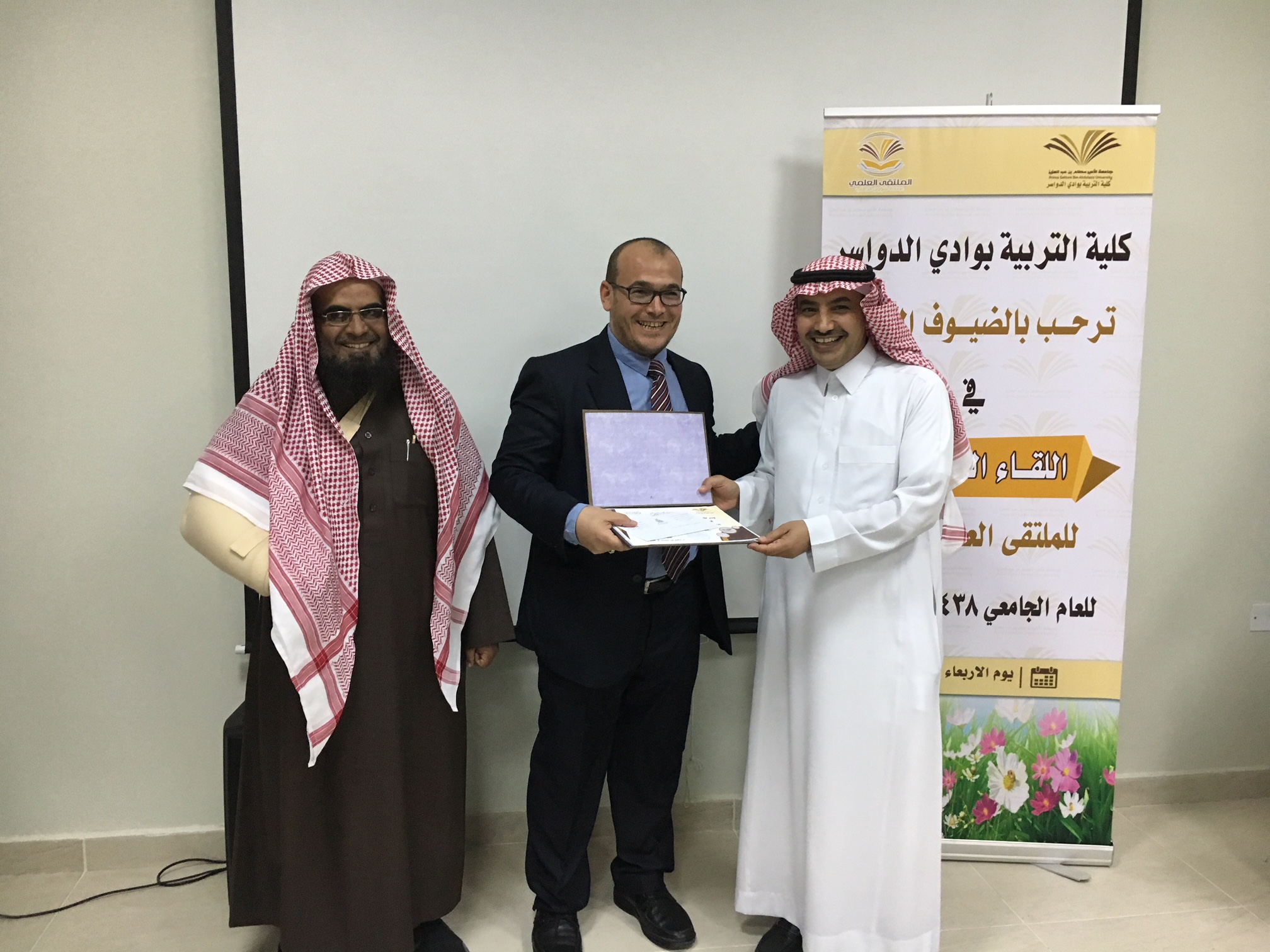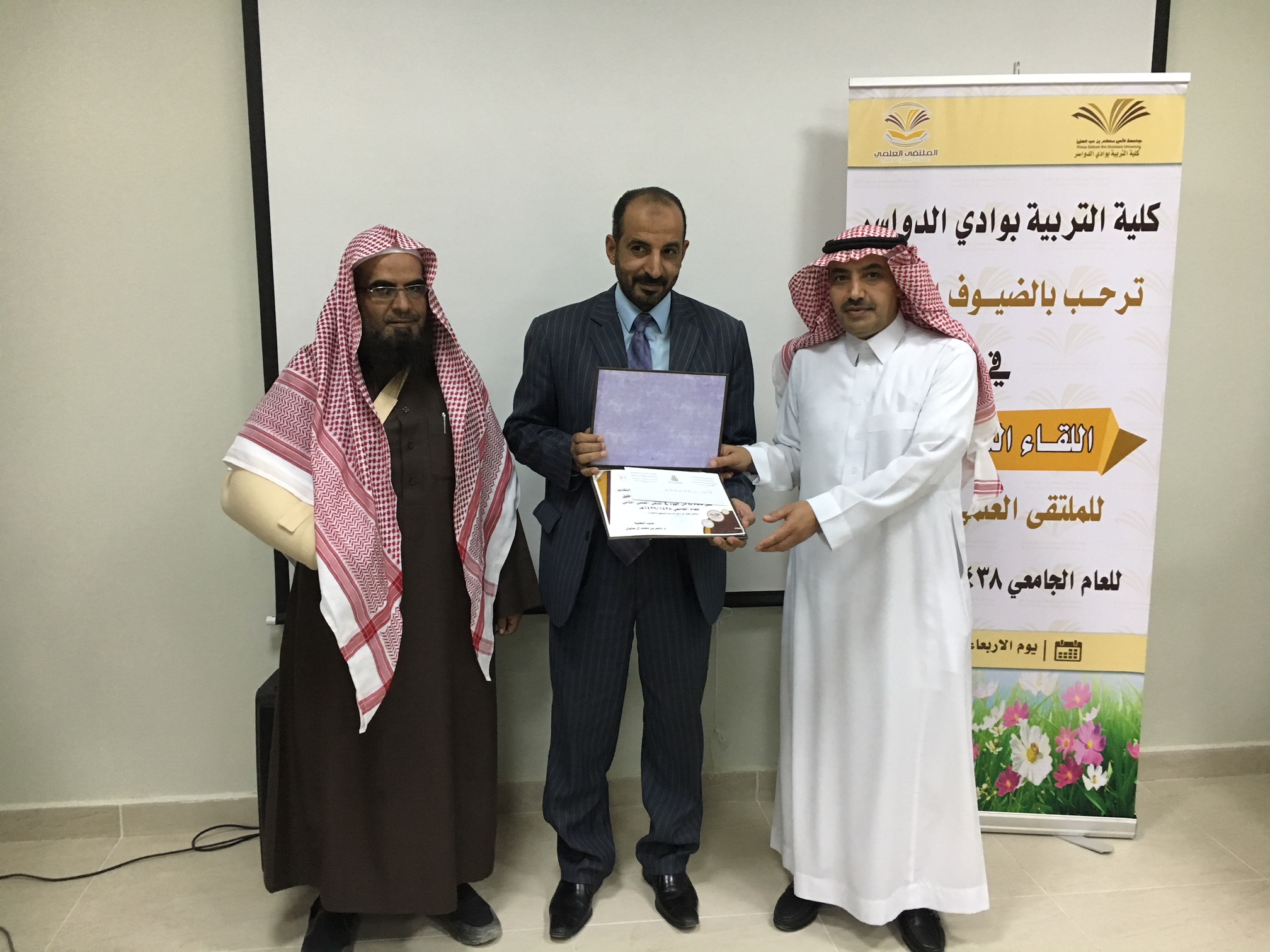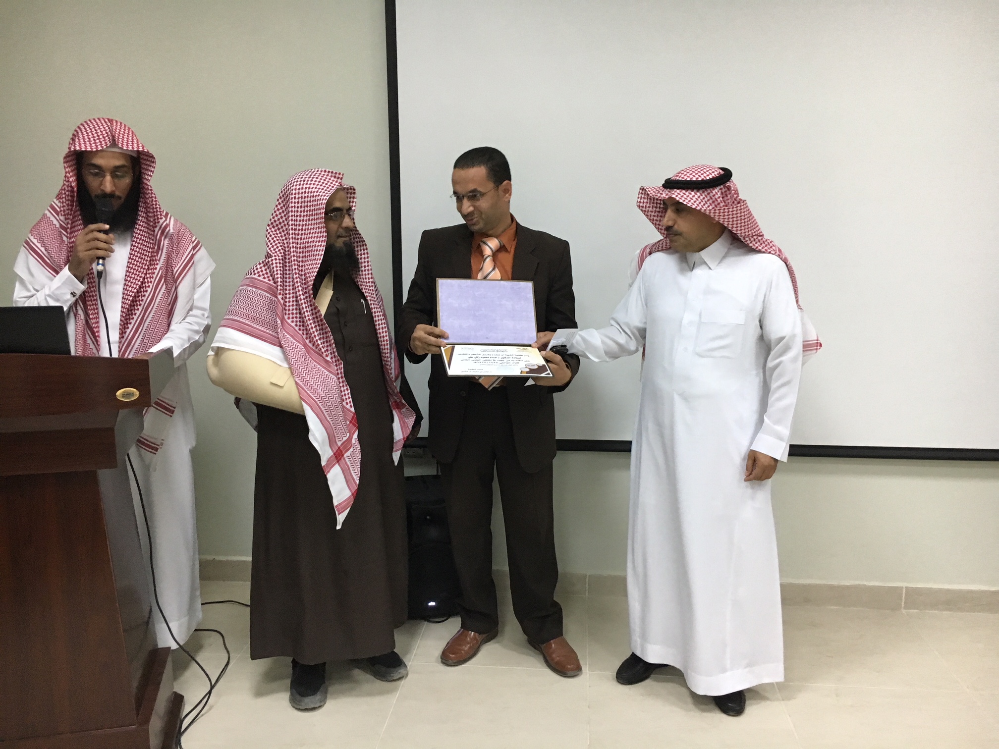 ثم جاء بعدها تكريم المشرفين على الطلاب من اعضاء هيئة التدريس والطلاب المشاركين على ما بذلوه من جهد كبير ومتميز .