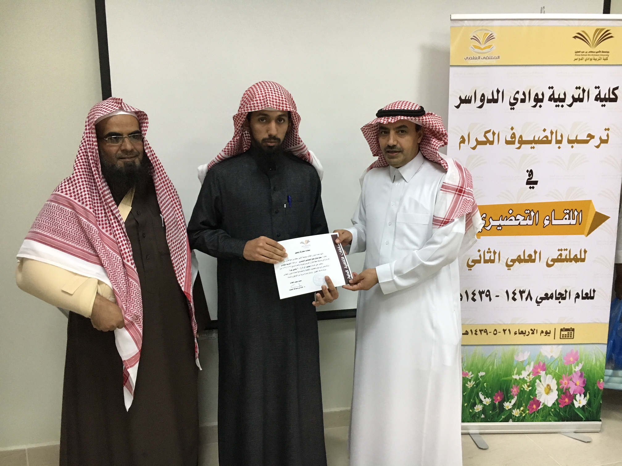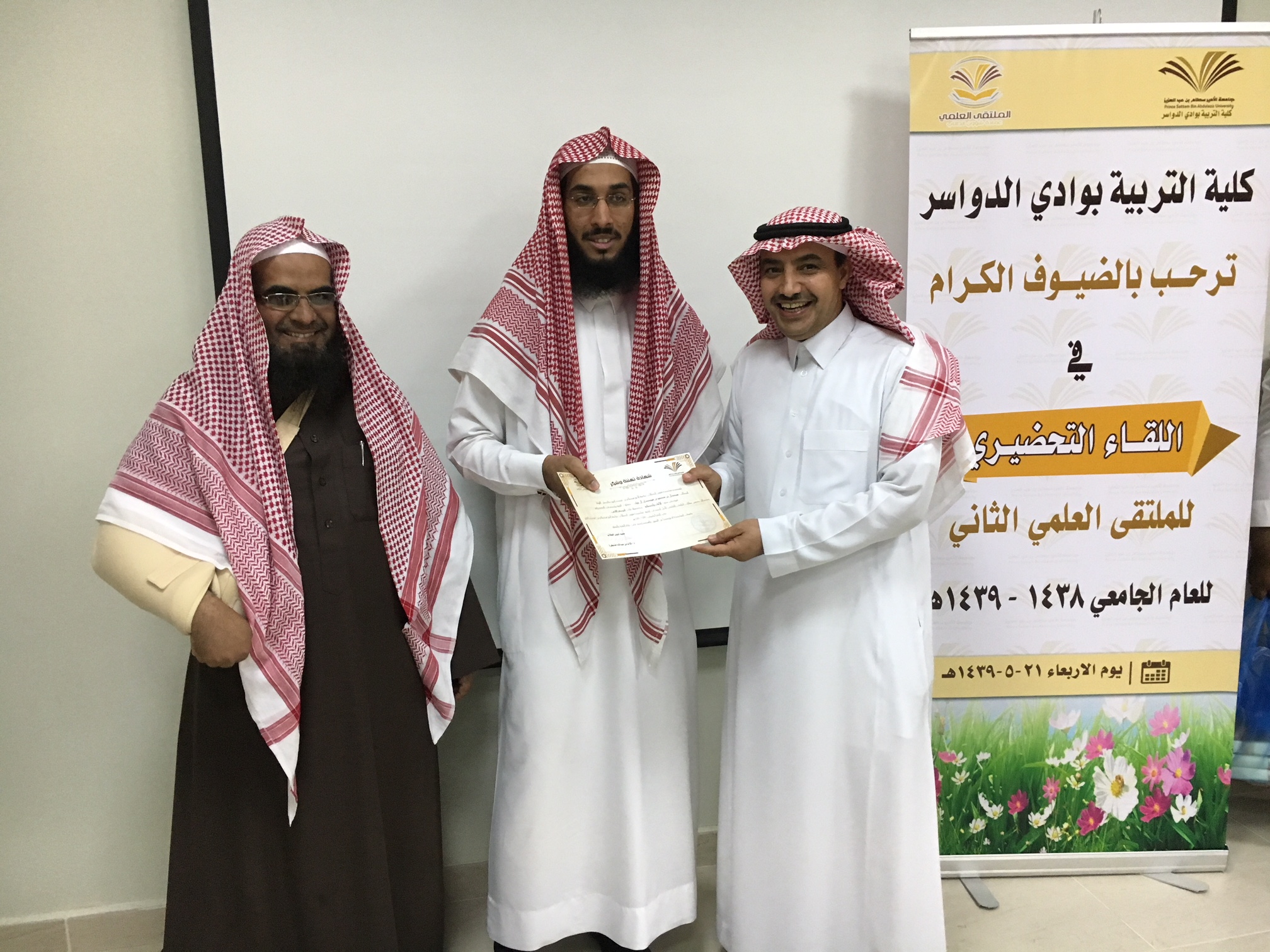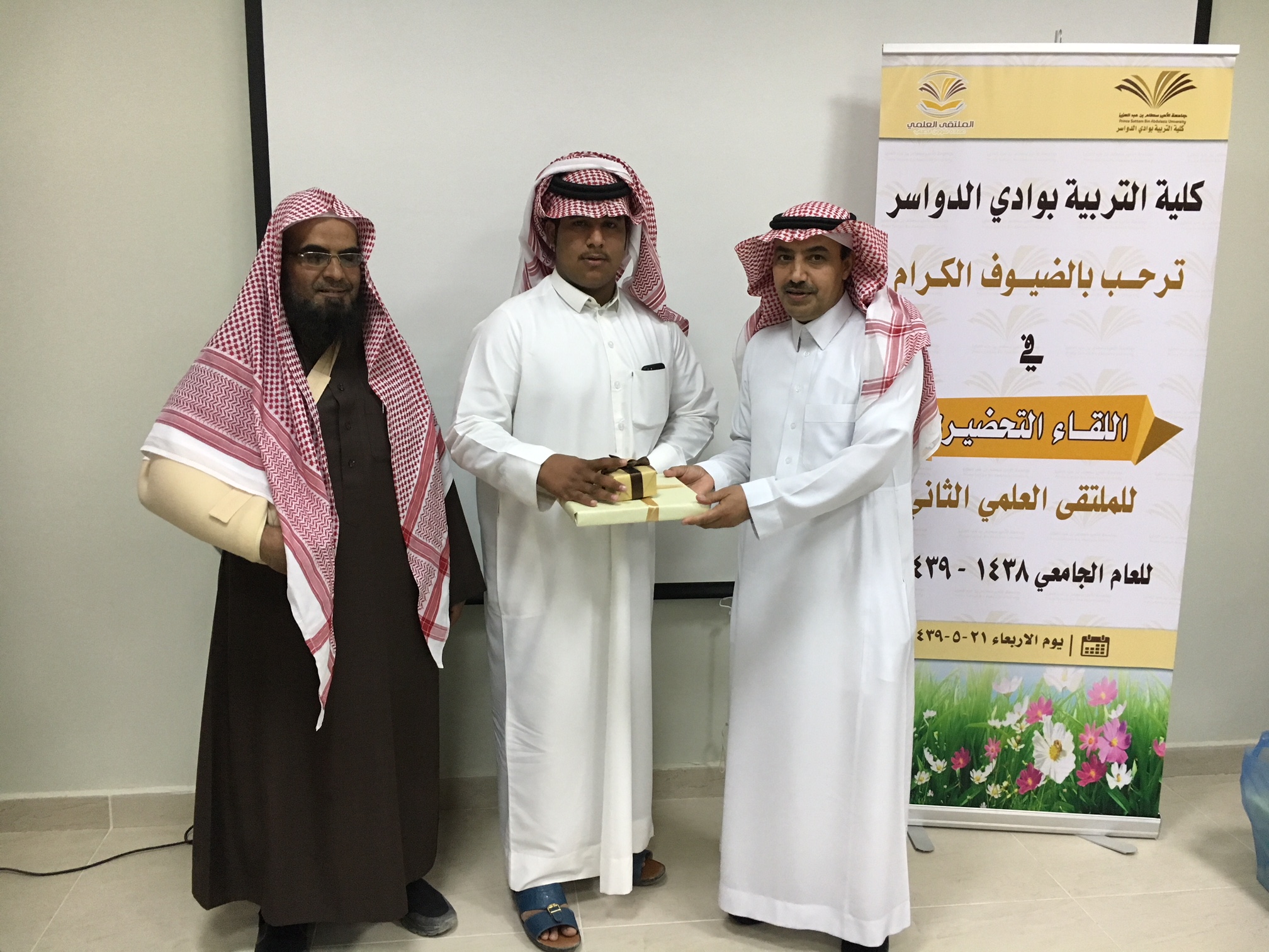 كان ذلك خلال اقامت كلية التربية اللقاء التحضيري للملتقى العلمي الثاني بحضور العشوان وعميد عمادة شؤون الطلاب والوفد المرافق له وقد حضر اللقاء عدد من أعضاء هيئة التدريس والمجلس الطلابي وأعضاء النادي الطلابي التاسيسي وعشيرة الجوالة وعدد من طلاب الكلية.
