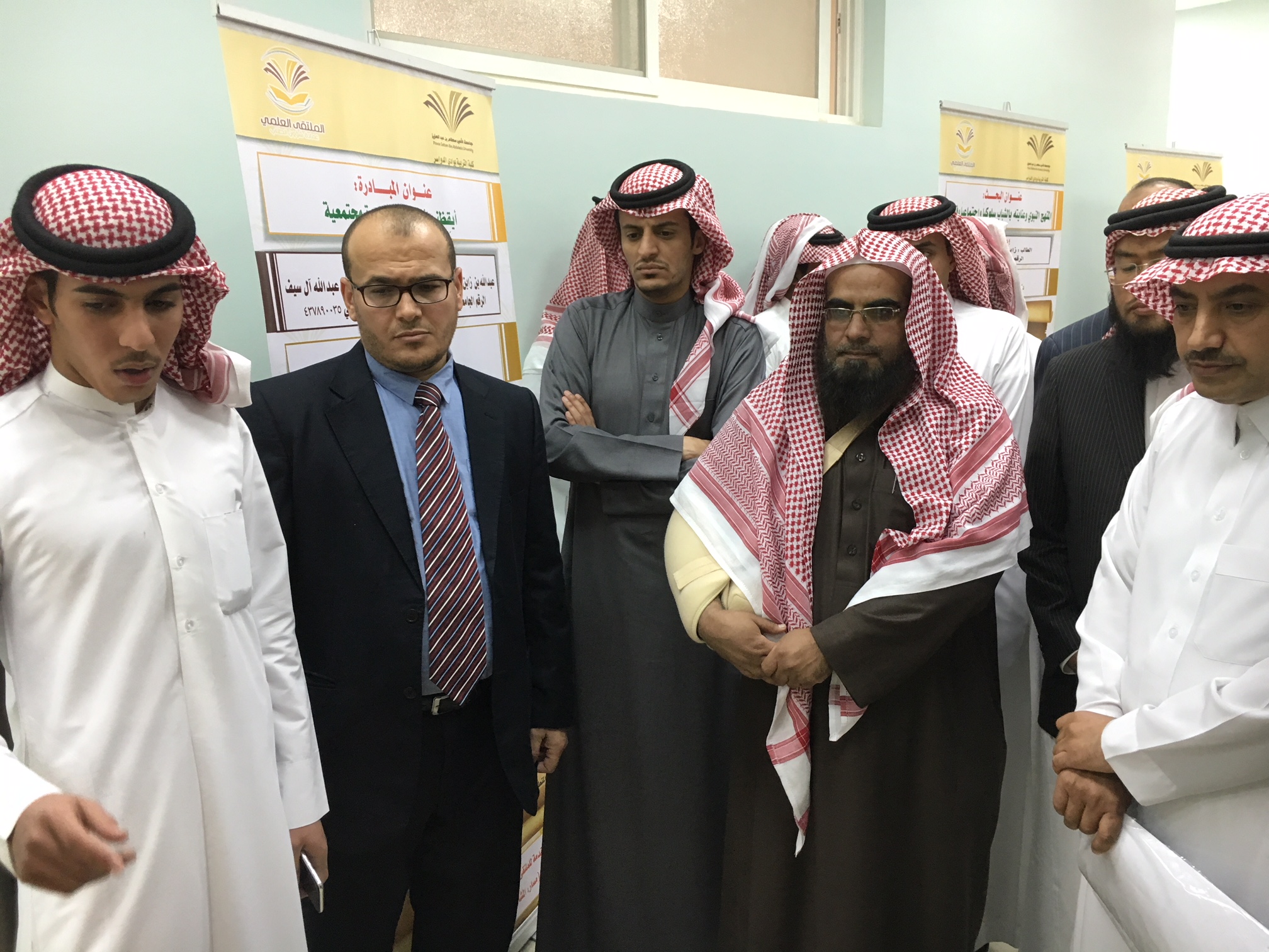 وجاءت بعد ذلك كلمة عميد شؤون الطلاب لتعبر عن رؤية العمادة للملتقى وتحفيز الطلاب على الأخذ بأسباب التقدم فيمجالات البحث العلمي والابتكار , تلى ذلك عرض مرئي عن جهود الكلية لنشر الملتقى العلمي من بداية انطلاقه حتى عرض المشاركات .