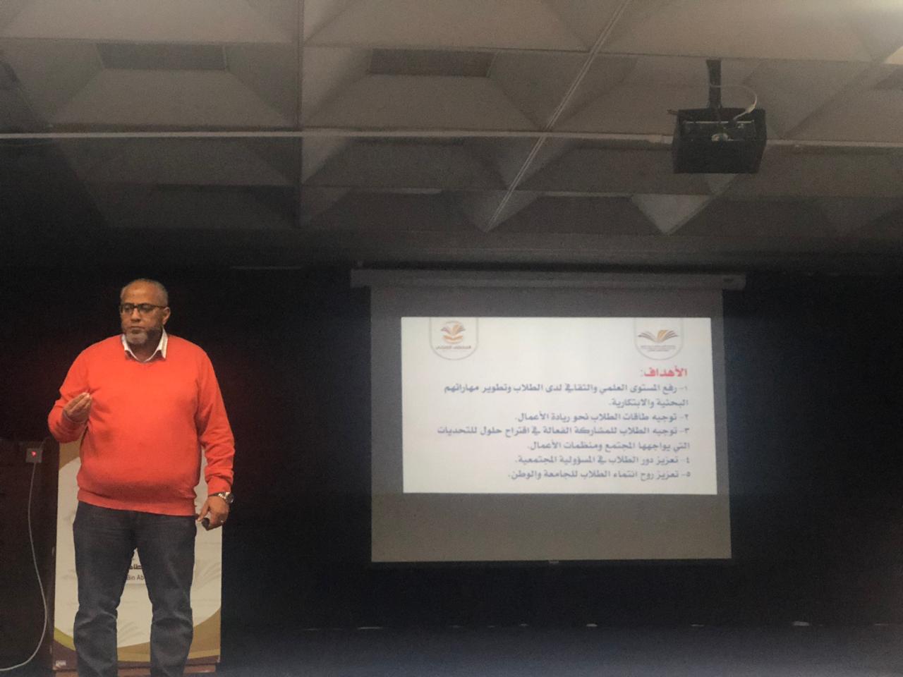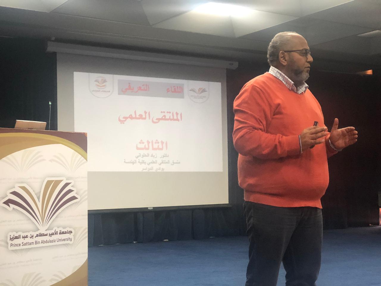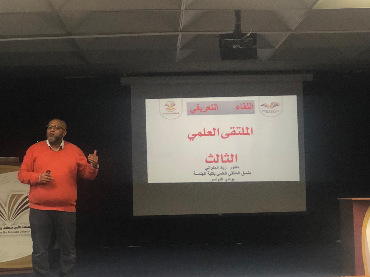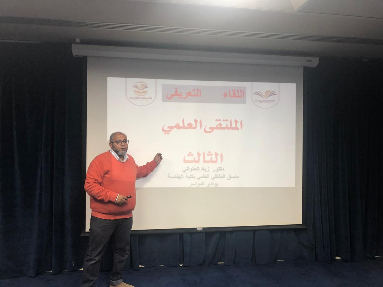 بتوجيه وإشراف عميد كلية الهندسة بوادي الدواسر الدكتور / مجاهد محمد آل ضيف الله ، أقامت الكلية يوم أمس الاثنين الموافق 1440/3/25هـ على مسرح الكلية الهندسة ، اللقاء التعريفي العام بالملتقى العلمي الثالث لطلاب الكلية ، قدمها الدكتور / زياد الحلواني ، المنسق العام للملتقى العلمي الثالث بكلية الهندسة ، وبحضور لفيف من الطلاب والسادة أعضاء هيئة التدريس والإداريين بدأ اللقاء التعريفي وفي أجواء يسودها التركيز والإمعان والمشاركة الفعالة من قبل الطلاب .