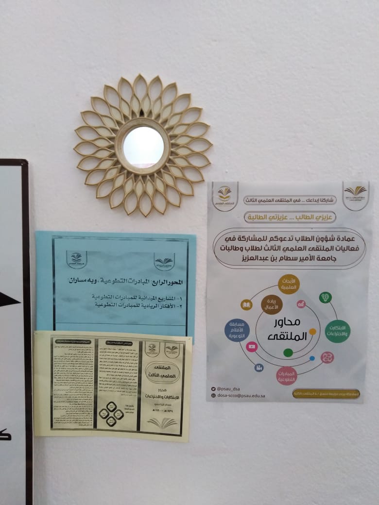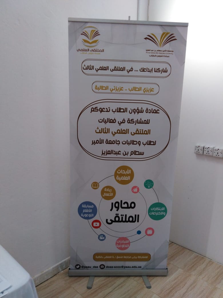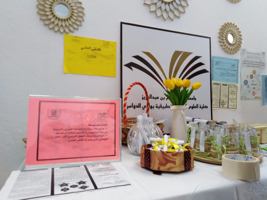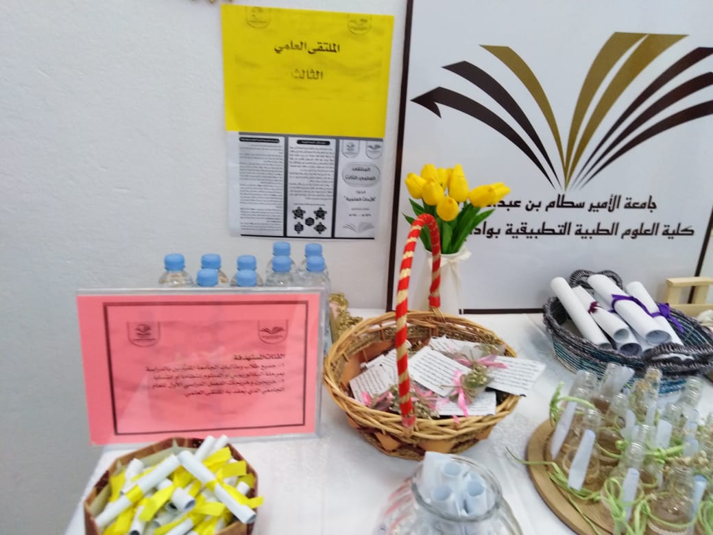 أقيم اللقاء التعريفى الثانى للملتقى العلمى الثالث للطالبات وأعضاء هيئة التدريس بكلية العلوم الطبية التطبيقية بوادى الدواسر تحت رعاية سعادة مشرف الكلية دكتور ماجد الشريدة والذي استمر على مدار يومي الاربعاء والخميس١٠و ١١ من الشهر الحالى وقد اشتمل على إلقاء محاضرة للطالبات عن الملتقى و محاور وضوابط وجوائز ومواعيد اللقاء التحضيرى والتسليم والتحكيم كما تم تشكيل لجان من أعضاء هيئة التدريس لكل محور مع ولجنة تنظيمية ولجنة للإعلام والاعلان وكذلك تم توزيع الدليل الخاص بالملتقى على جميع أعضاء هيئة التدريس وتوزيع نسخ منه للطالبات للإطلاع وجارى ترجمته إلى اللغة الإنجليزية.وتم توزيع منشورات بالمحاور والجوائز لتحفيز الطالبات على المشاركة .