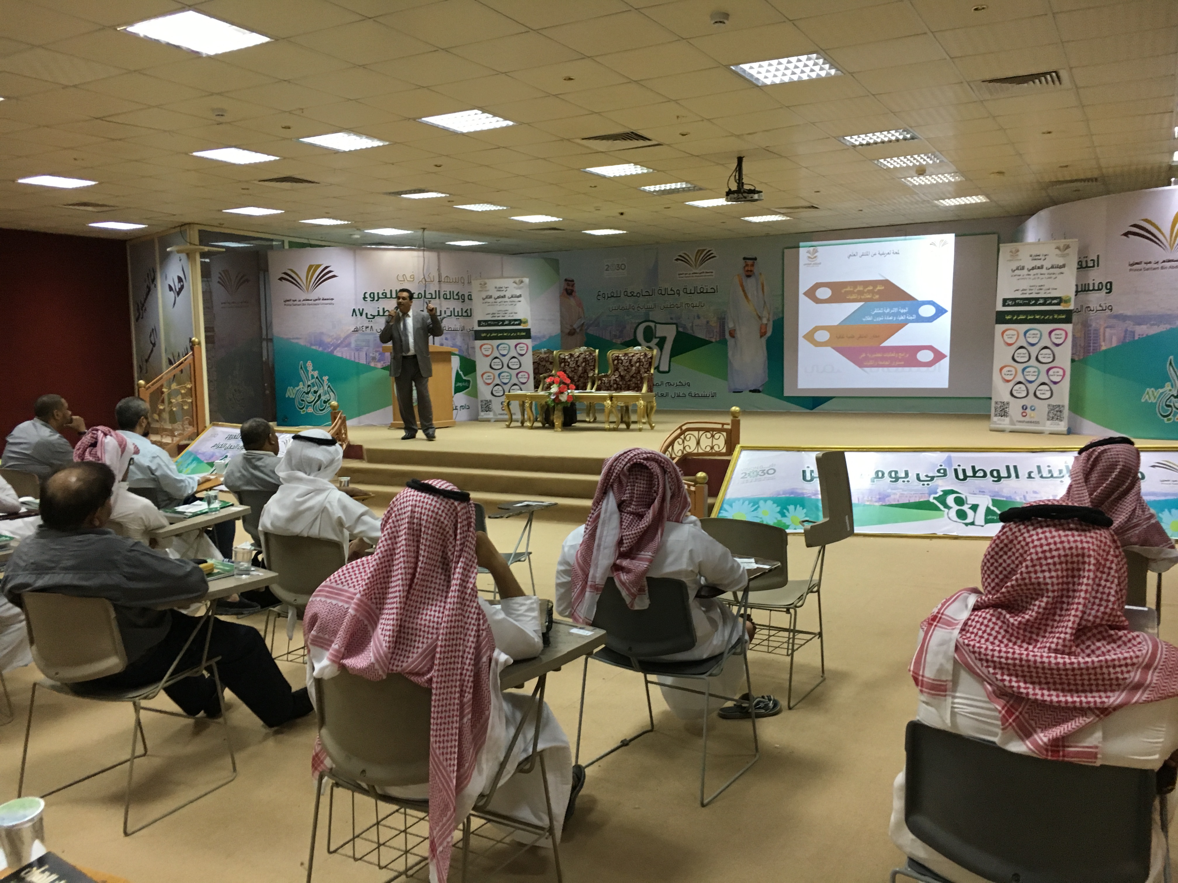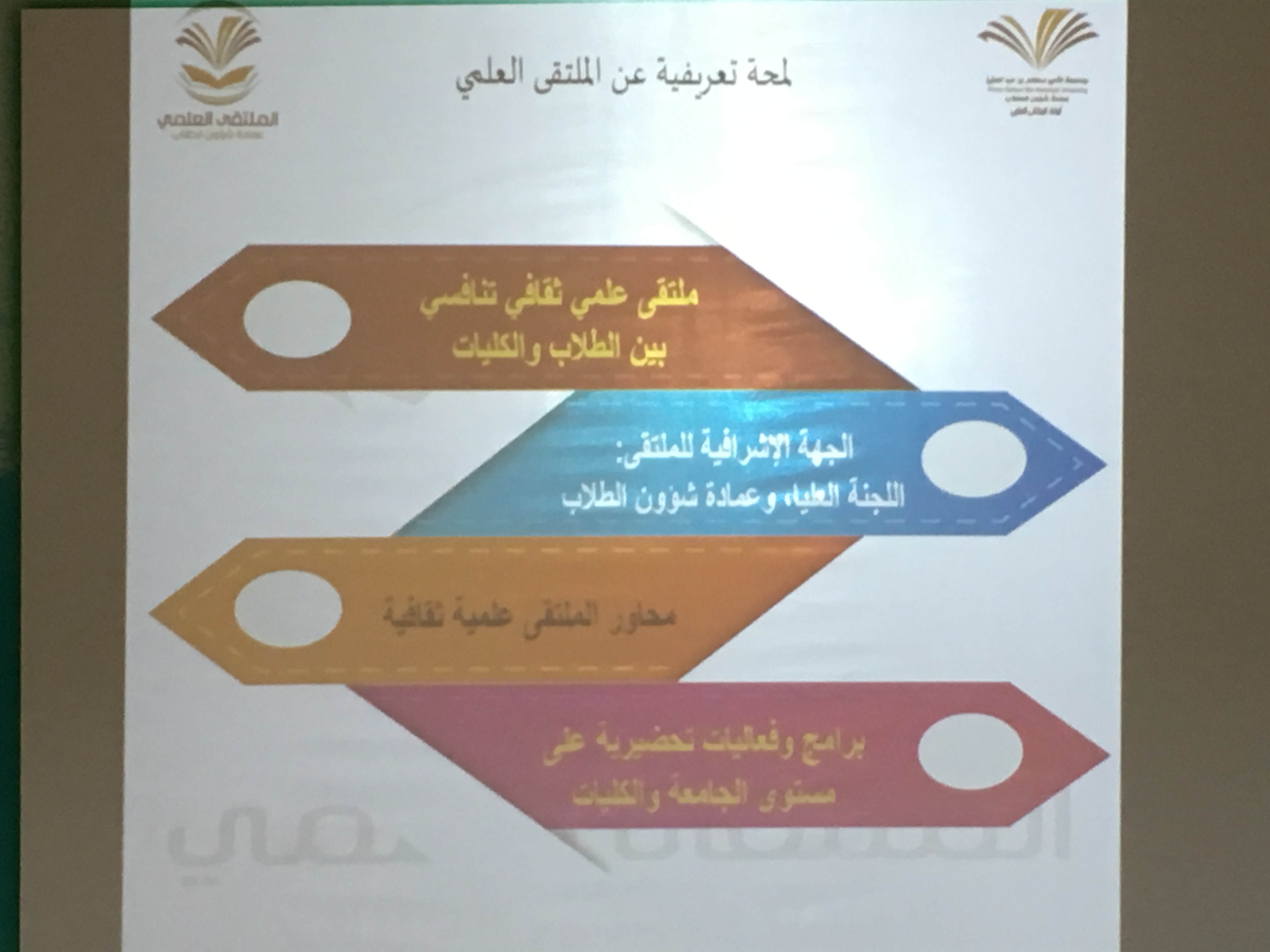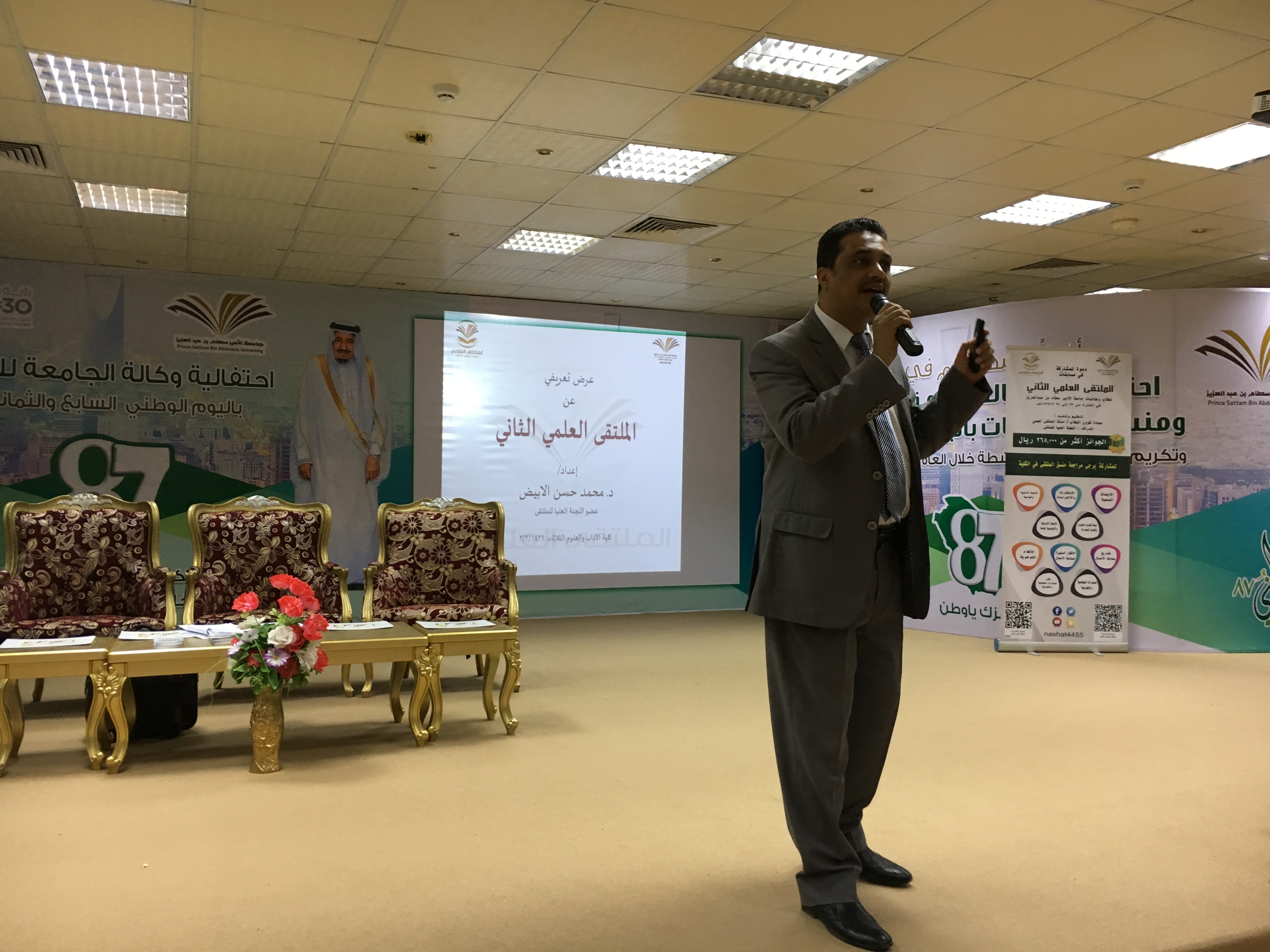 ضمن الحملة الإعلامية التعريفية المتعلقة بالملتقى العلمي الثاني التي تقيمها عمادة شؤون الطلاب ممثلة في اللجنة العليا للمؤتمر ، أقامت كلية الآداب والعلوم بوادي الدواسر لقاء تعريفياً عن الملتقى العلمي الثاني بمسرح الكلية والذي استضافت فيه عضو اللجنة العليا للمؤتمر الدكتور محمد حسن الأبيض ، عضو هيئة التدريس بكلية التربية .