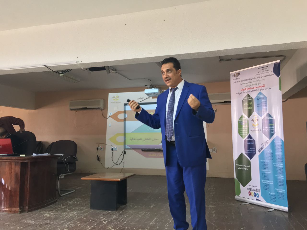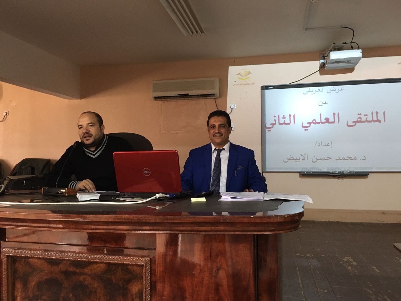 وبين الابيض الجوائز المرصودة من قبل الجامعة للفائزين وتحديد مواعيد الورش والدورات التدريبة المقبلة للمؤتمر العلمي الثاني ، وفي نهاية اللقاء فتح المجال للحضور بطرح الأسئلة والمقترحات . حضر اللقاء عدد من أعضاء التدريس وطلاب الكلية .