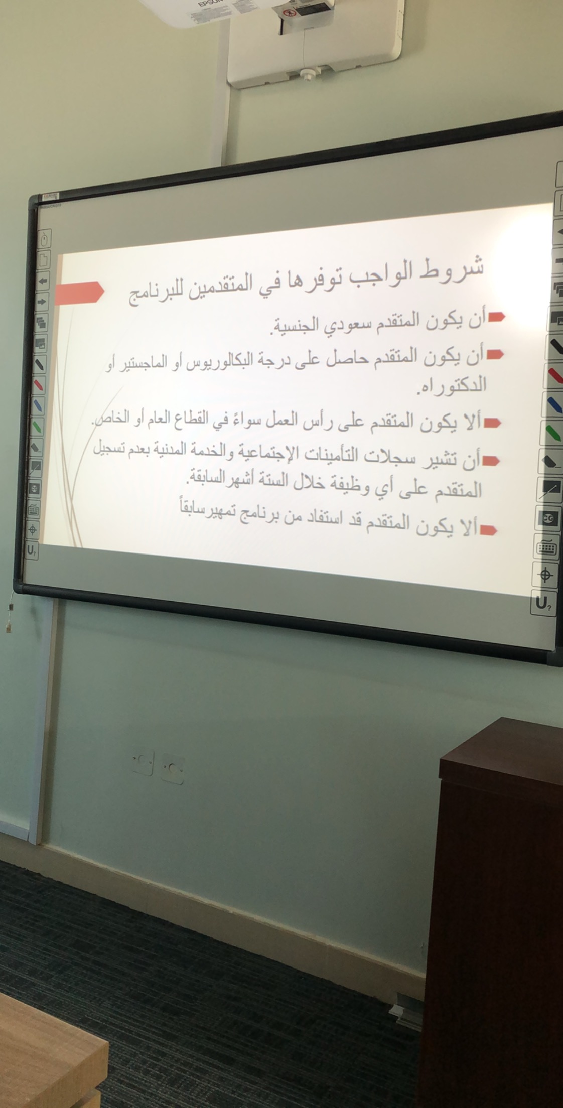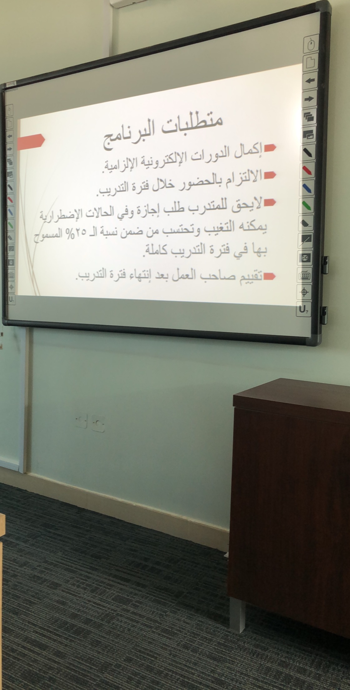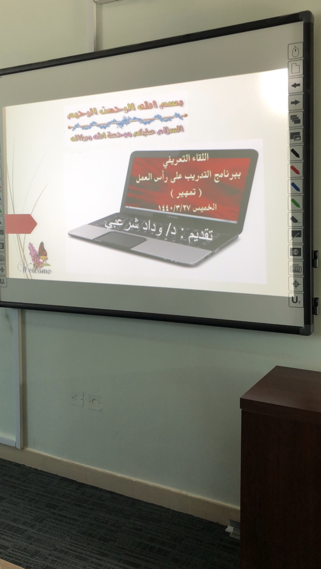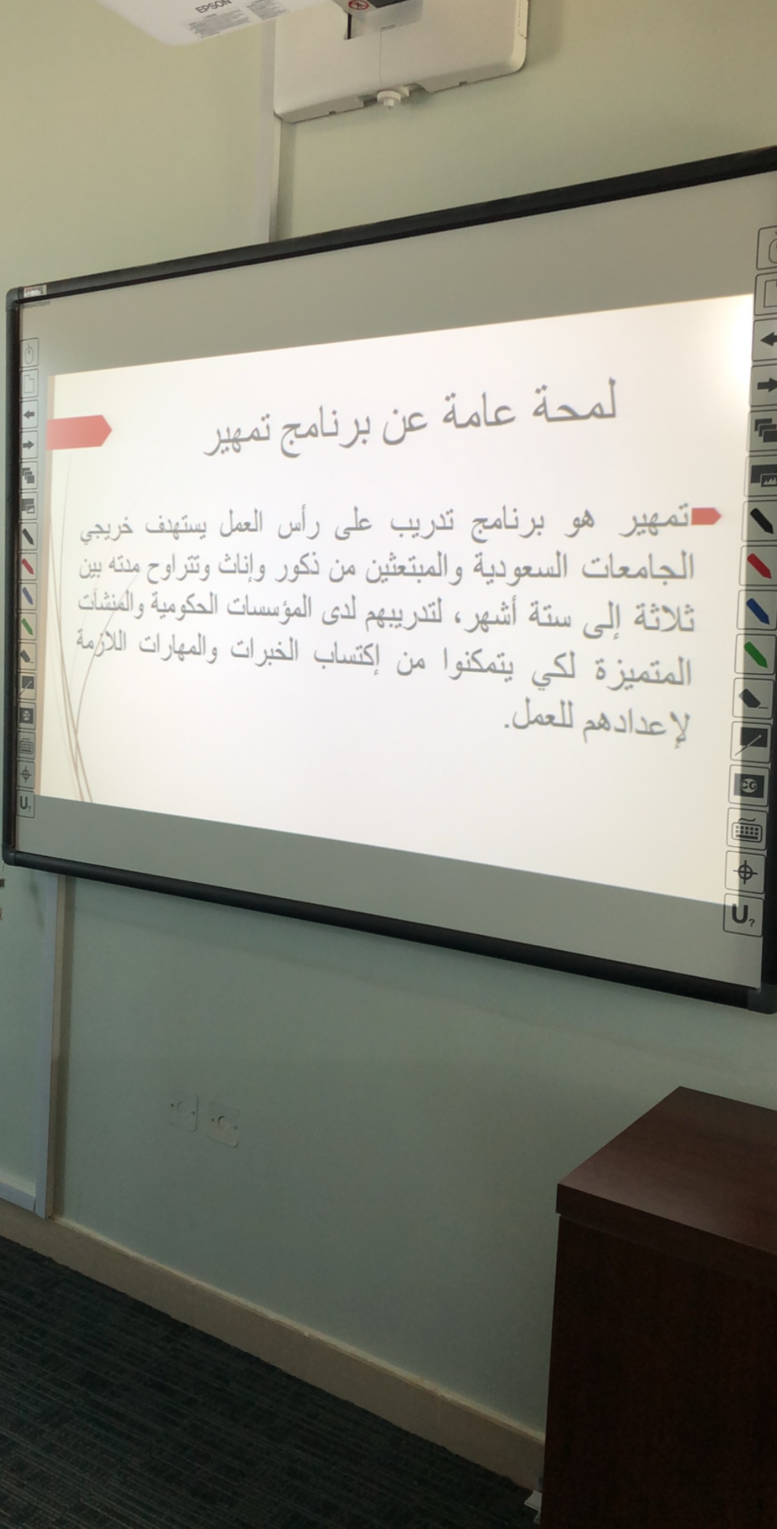 من منطلق حرص وكالة الجامعة للشؤون التعليمية والأكاديمية على تدريب وتأهيل الخريجين للمنافسة في سوق العمل وزيادة نسب التوظيف في القطاع الخاص نظمت وحدة الخريجات بكلية التربية بالدلم اللقاء التعريفي ببرنامج التدريب على رأس العمل "تمهير" اليوم الخميس 28/3/1440هـ في قاعت التدريب استهدفت فيها الخريجات والمتوقع تخرجهن، قدمته الدكتورة / وداد شرعبي –وكيلة الكلية للشؤون التعليمية والاكاديمية ومشرفة وحدة الخريجات بالكلية.