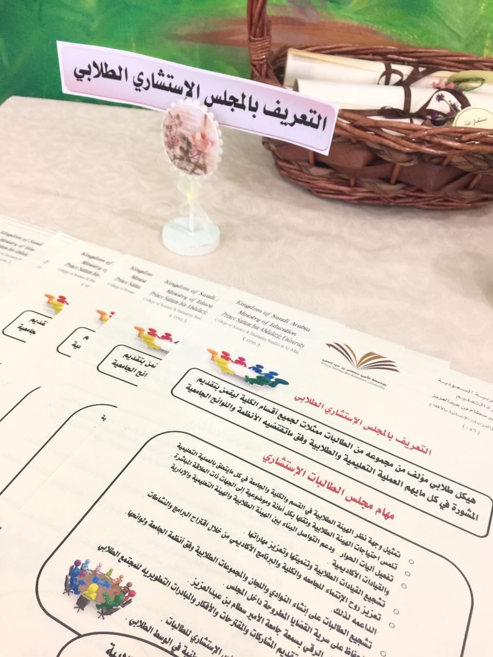 بعدها عرضت تشكيلة المجلس الطلابي مع شرحها ثم شارك قسم اللغة العربية التعريف بالمجالس الطلابية التابعة له.