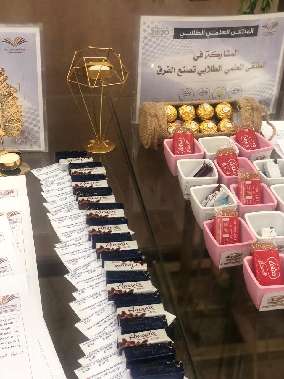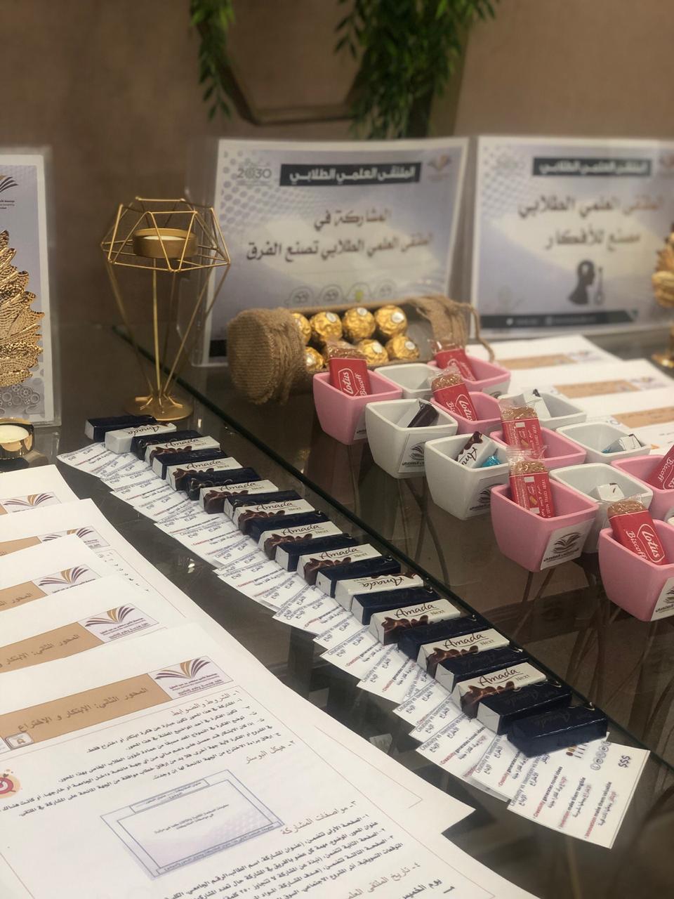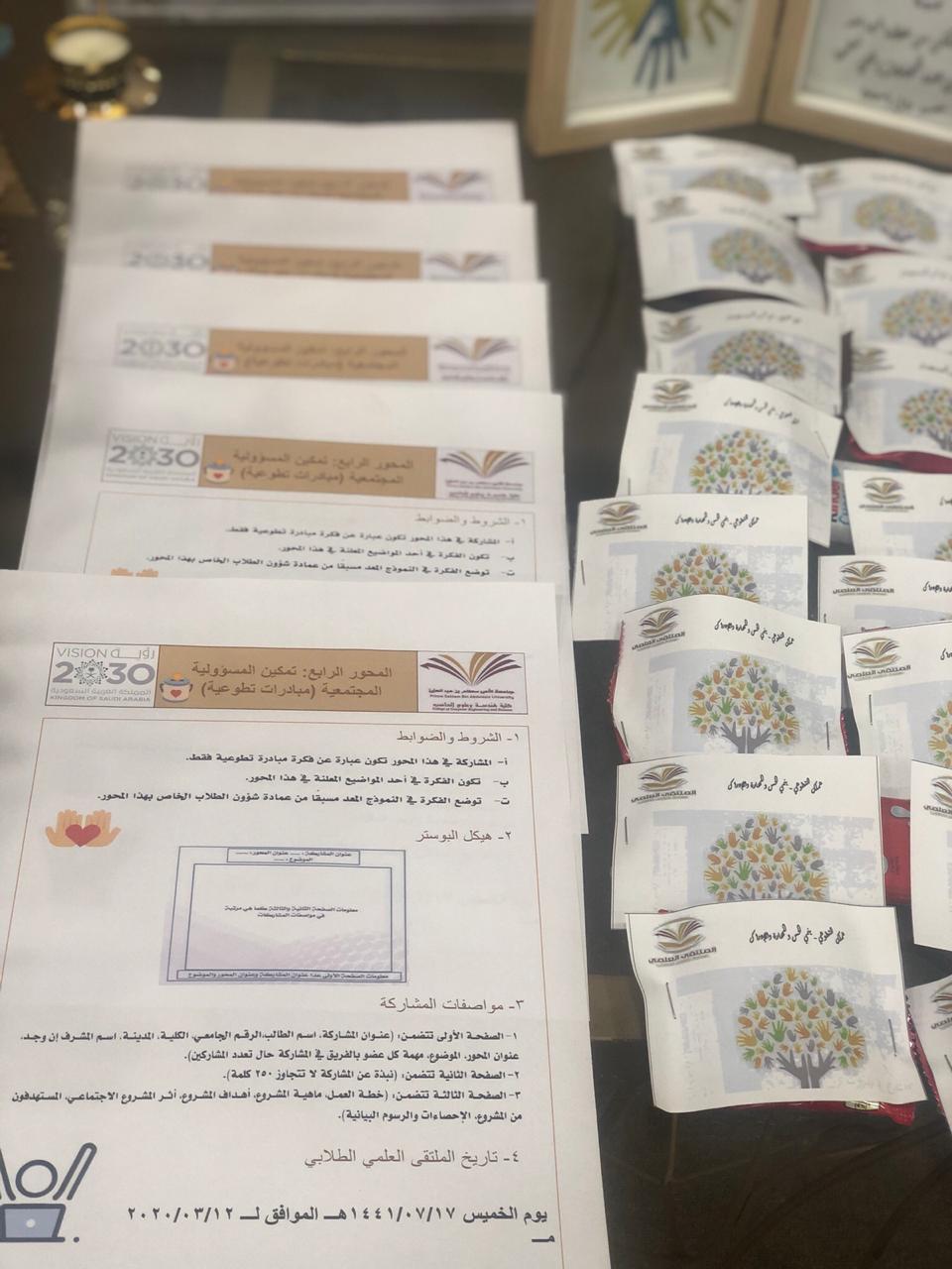 *بعد اللقاء تم وضع ركن إلى يوم الملتقى الطلابي في ساحة الكلية يحتوي على كل المنشورات الازمة لمحاور الملتقى.*