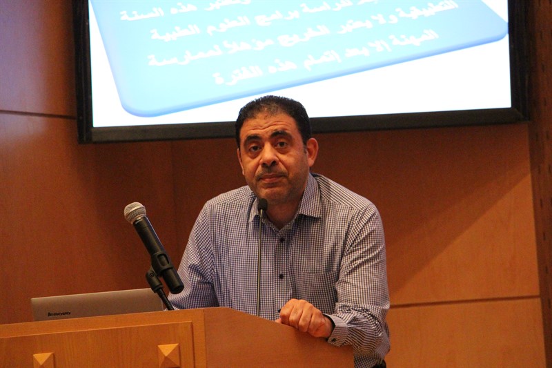 شارك في اللقاء الاستاذ/عبدالمجيد اليحيا, أخصائي المختبرات الطبية ومسئول التدريب بمستشفيي الملك خالد و مركز الامير سلطان بالخرج.دار اللقاء حول أهمية سنة الامتياز للطالب و كيفية الاستفادة القصوى منها و كذلك عن حقوق طالب الامتياز وواجباته خلال فترة التدريب.