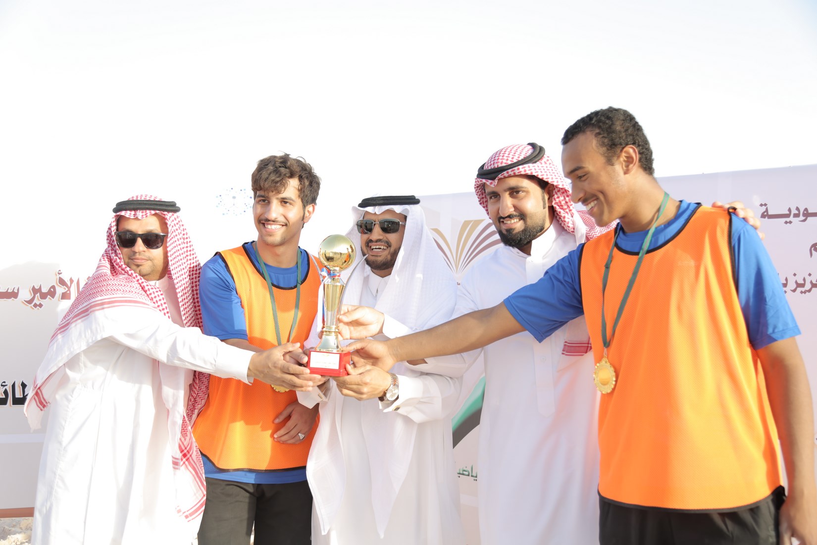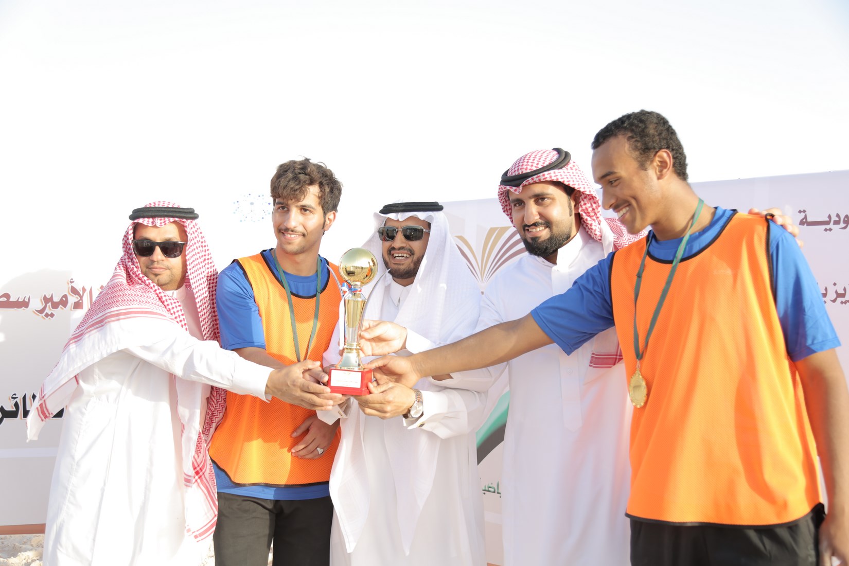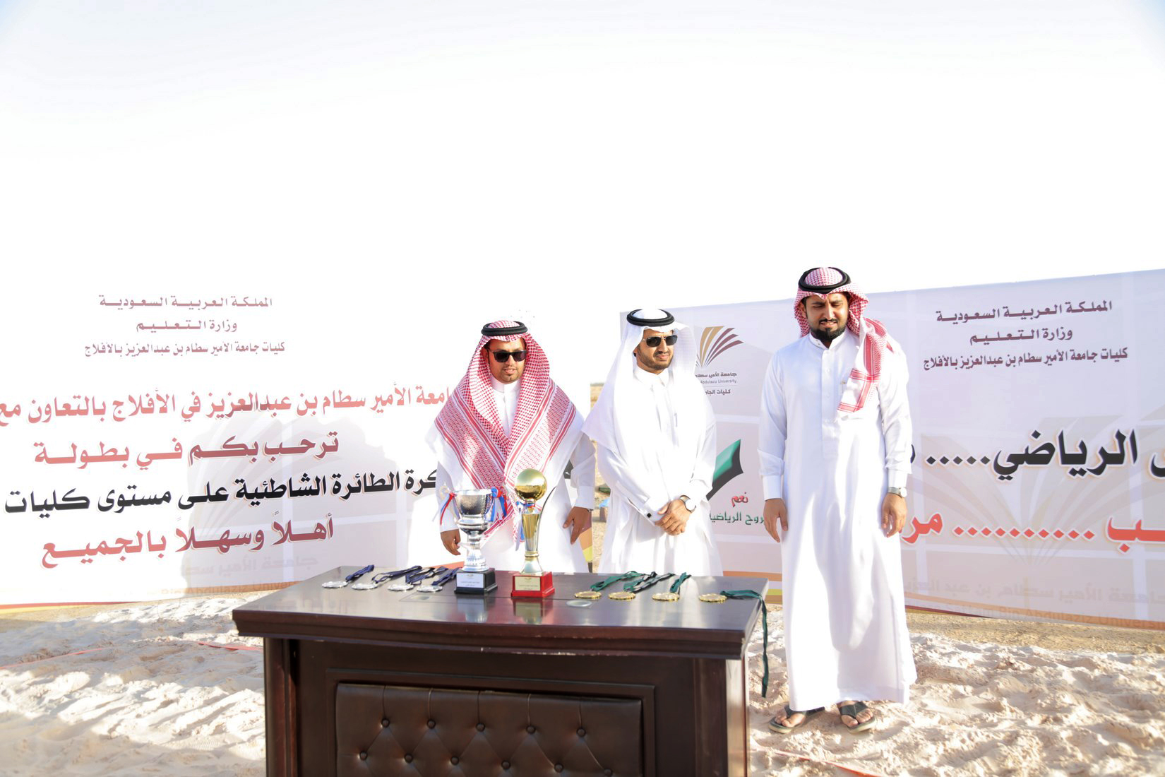 عقبها سلم المشرف العام على كليات الجامعة بمحافظة الأفلاج الدكتور مسفربن محماس الكبيري صاحب المركز الأول في البطولة الكأس والميداليات الذهبية , والميداليات الفضية لصاحب المركز الثاني.