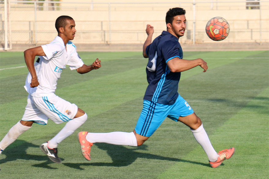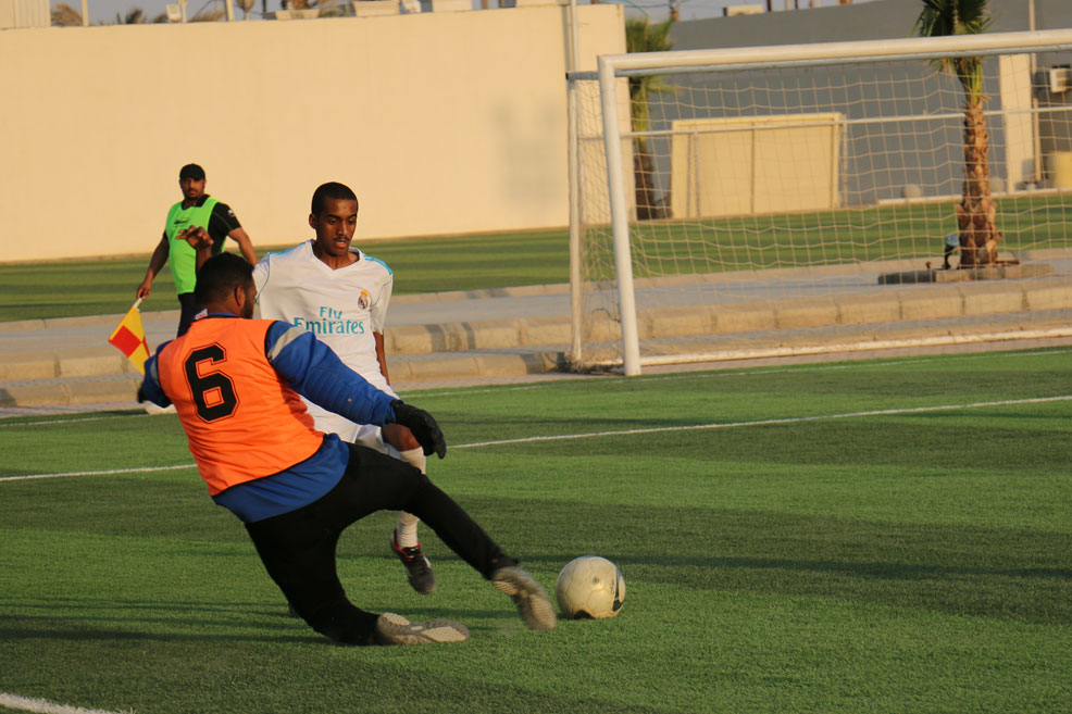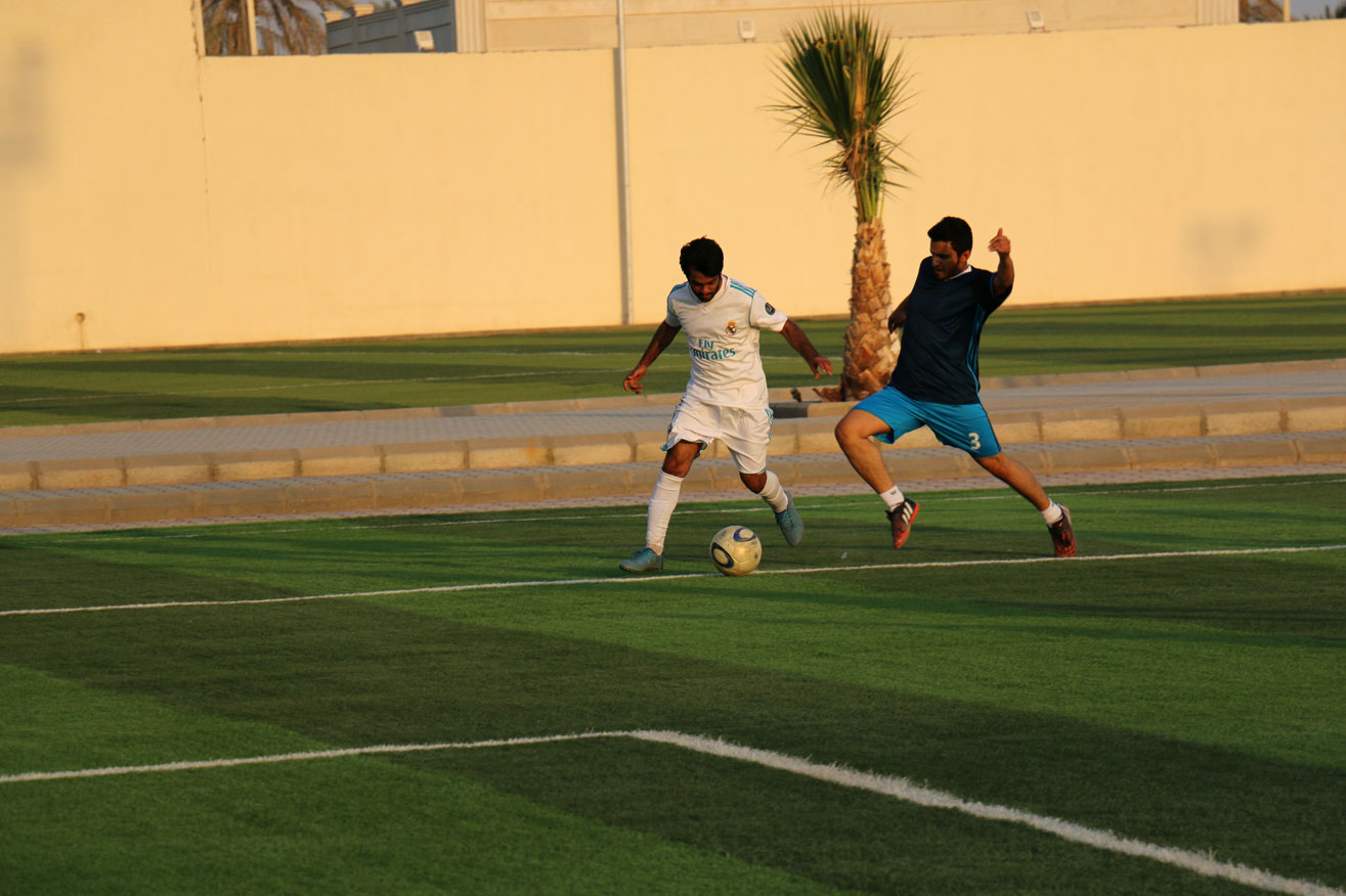 ضمن مباريات بطولة كأس معالي مدير الجامعة لكرة القدم والتي تنظمها عمادة شؤون الطلاب لعب يوم الأربعاء 14 / 1 / 1439هـ فريق كلية العلوم والدراسات الإنسانية بالخرج مع فريق كلية الهندسة بالخرج , حيث انتهت المباراة بالتعادل الإيجابي 1 – 1 , ليحتكم الفريقين لركلات الترجيح والتي انتهت بفوز كلية العلوم الإنسانية بنتيجة 3-1, وبهذا الفوز يواجه فريق العلوم فريق كلية هندسة الحاسب يوم الثلاثاء القادم 20 / 1 /1439هـ.