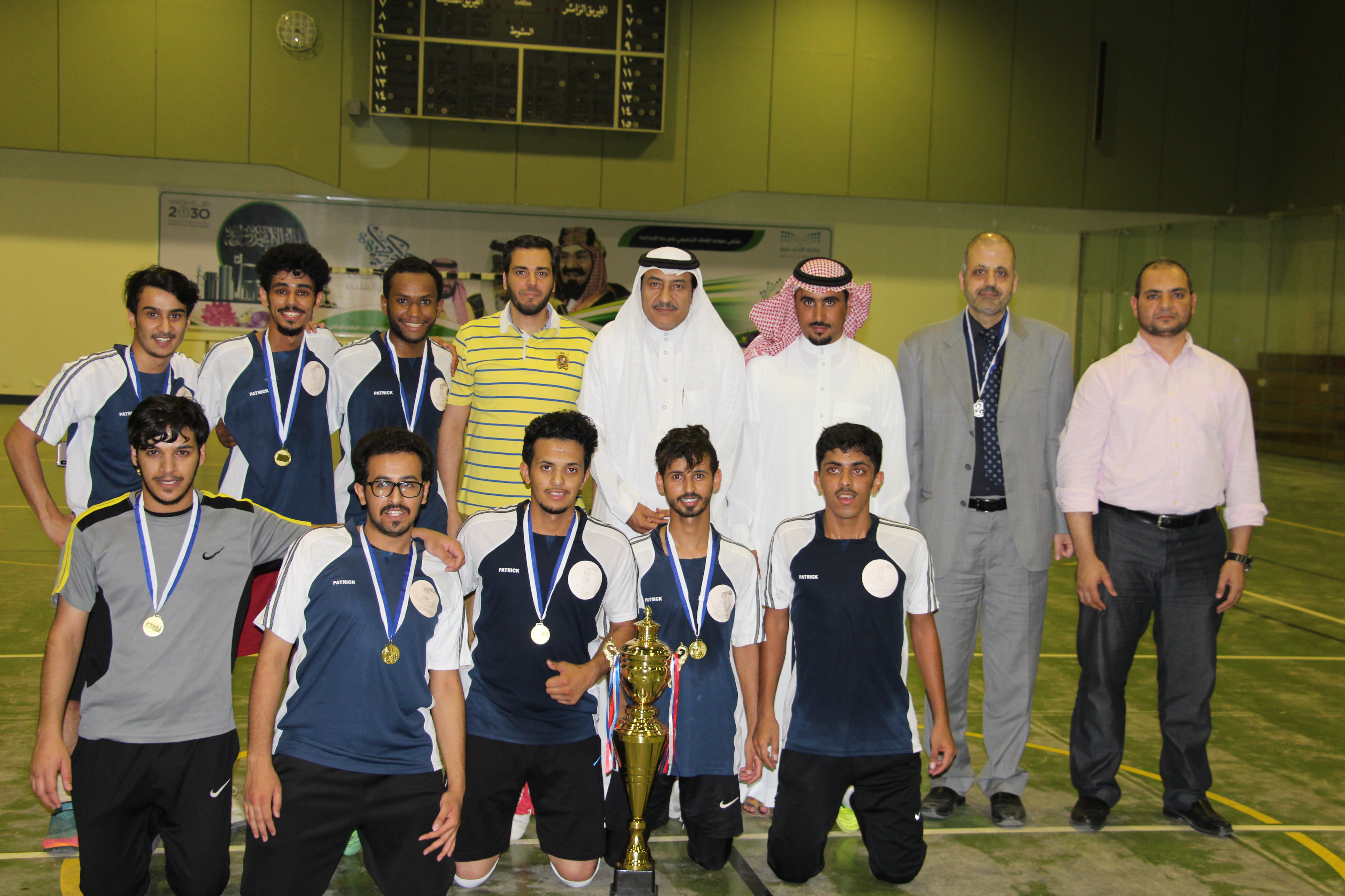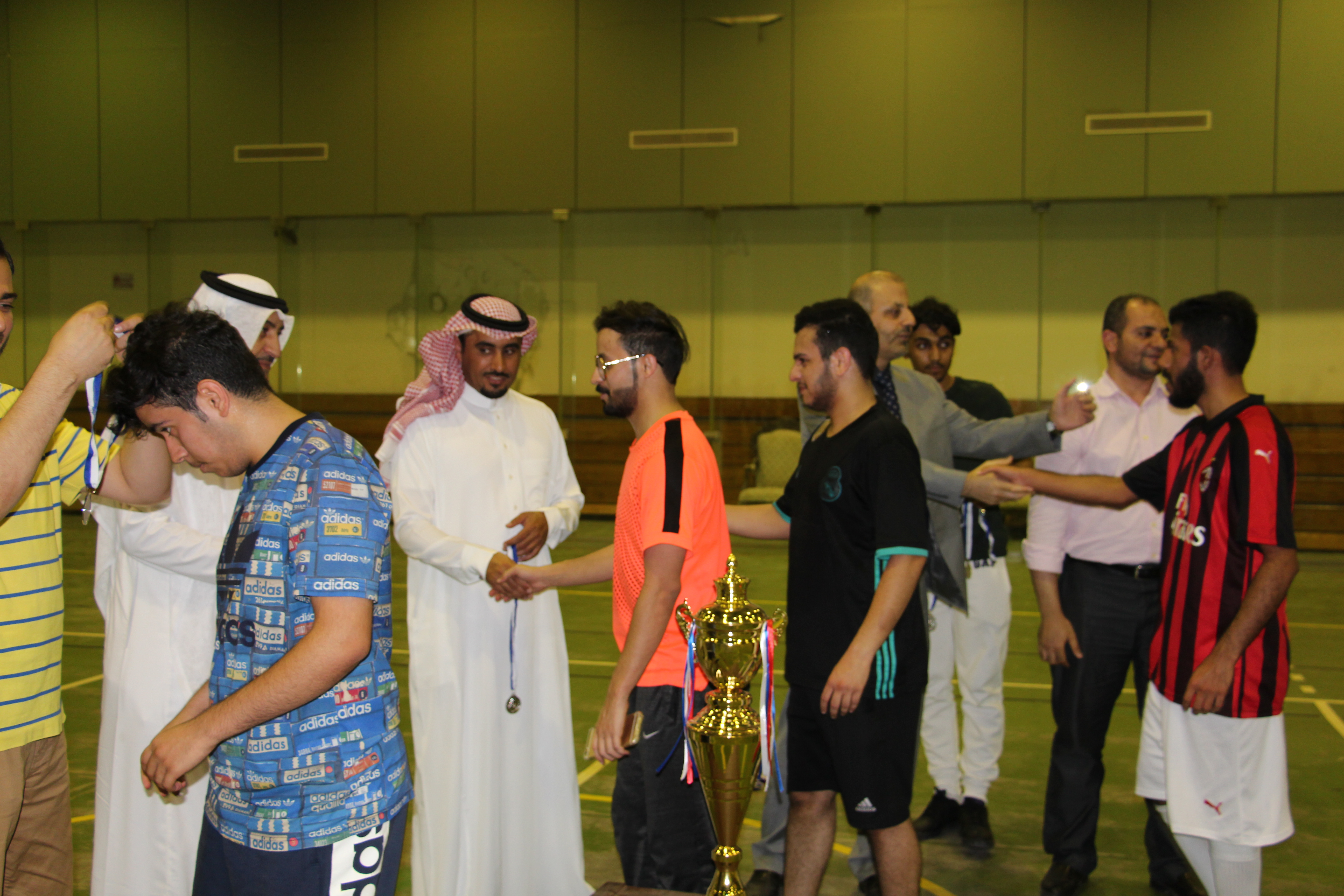 تحت رعاية عميد الكلية سعادة الأستاذ الدكتور/ ماهر بن مفضي العنزي أقيمت المباراة الختامية لبطولة كأس عميد الكلية لكرة القدم يوم الثلاثاء الموافق 29/2/1440هـ في الصالة الرياضية لنادي الشعلة وقد شارك في البطولة 6 فرق من جميع أقسام الكلية وصعد للنهائي فريقي العلاج الطبيعي وتقنية الأجهزة الطبية.