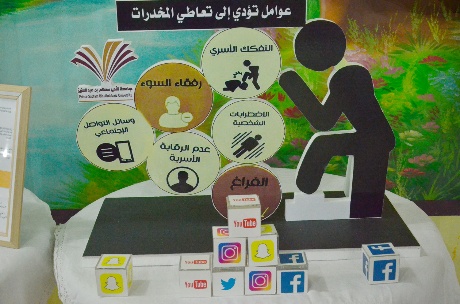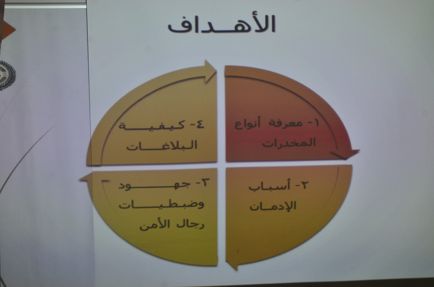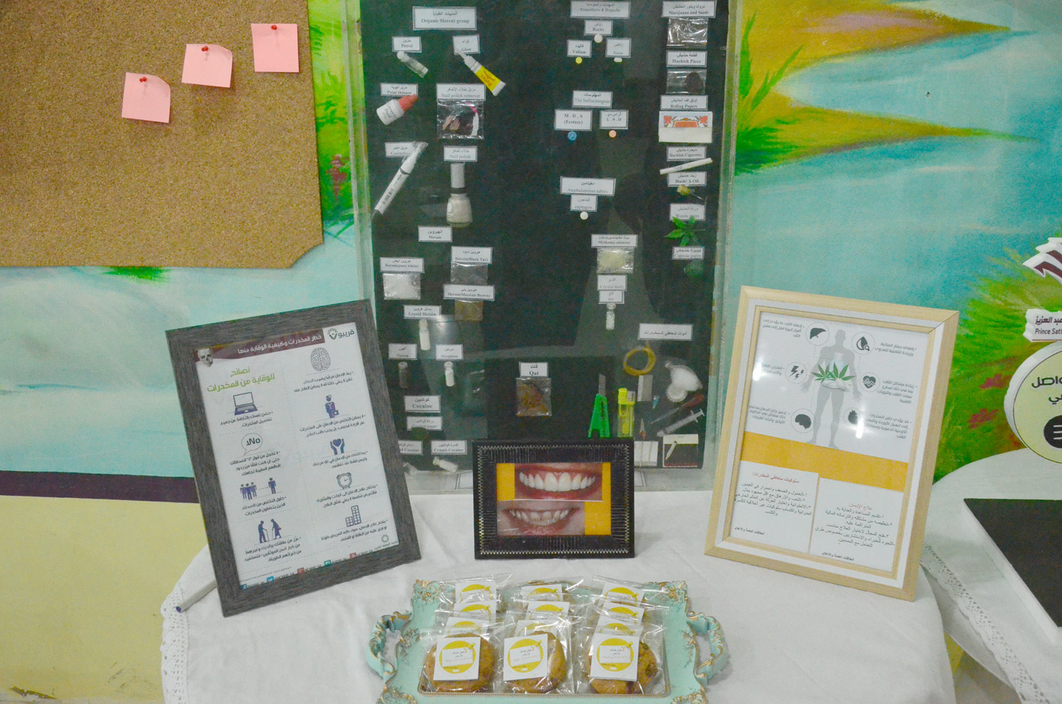 نظمت كلية العلوم والدراسات الإنسانية بالأفلاج ( شطر الطالبات ) يومي الأثنين و الثلاثاء 1440/5/22 هـ الساعة العاشرة والنصف في قسمي الكلية الأدبي والعلمي تحت اشراف لجنة العمل المشترك مع المديرية العامة لمكافحة المخدرات محاضرة توعوية بعنوان ( حمايتكم هدفنا ) قدمتها أ/فاطمة الشايعي و أ/ ريم العنزي صاحبها معرض بأنواع المخدرات وطرق تهريبها وكذلك منشورات توعوية ، استهلت المحاضرة بعرض أنواع المخدرات و تأثيرها و طريقة صناعتها و مكوناتها و الأعراض التي تظهر على مستخدميها ، كما عرضت بعض الأدوية الطبية المصرح بها التي قد تؤدي إلى الإدمان في حال الإستخدام الخاطئ لها ، وكذلك المستنشقات الطيارة ، و أنواع جديدة للمخدرات صممت خصيصاً لإستهداف صغار السن ، تطرقت بعدها لكيفية الحصانة و الحماية منها ، تلاها عرض طرق التواصل مع المديرية للبلاغات و سرية التعامل معها .
