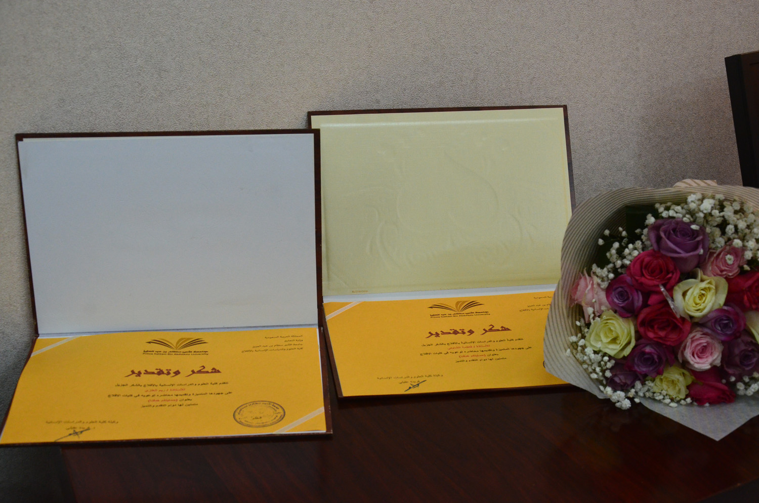 في ختام المحاضرة كرمت وكيلة الكلية الدكتورة فريدة عقيلي الأستاذة فاطمة الشايعي و الأستاذة ريم العنزي و شكرتهما على ما قدمتاه من جهد لتوعية الطالبات ضد هذه الحرب التي تستهدف أمننا وشبابنا - حمانا الله منها- .