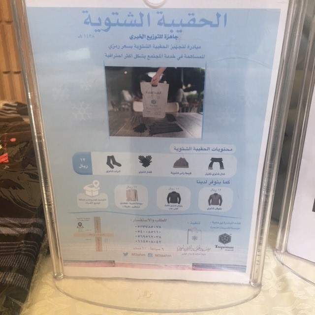 انطلقت (حملة كسوة الشتاء) بكلية العلوم الطبية التطبيقية وبتنظيم طالبات المجلس الطلابي (قسم العلاج الطبيعي) يوم الإربعاء 3/15/ 1438هـ بالساحة الخارجية للكلية والحملة عبارة عن عرض لحقائب شتوية مختلفة للرجال والنساء بحيث تم تجهيز عدد كبير من الحقائب بمشاركة طالبات الكلية لتوزيعها على أكبر عدد ممكن من العمالة والمحتاجين .