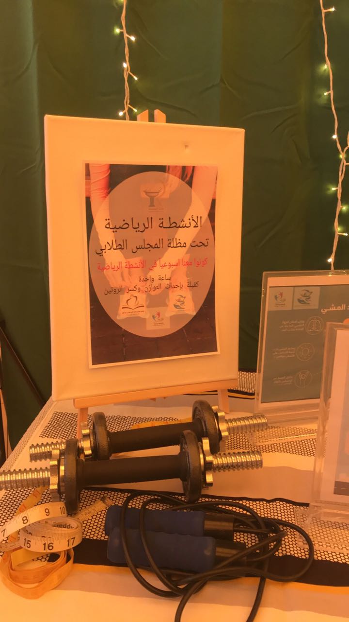 تفعيلاُ لرؤية 2030 وحسب توجيهات عمادة شؤون الطالبات بتفعيل الأنشطة الرياضية للطالبات وبالشراكة المجتمعية مع مؤسسات المجتمع استضاف المجلس الطلابي بكلية الصيدلة شطر الطالبات مدربة رياضة من مركز الفتاة الرشيقة بالخرج لعمل نشاط رياضي بهدف تحقيق فوائد صحية جمة لا تقتصر على الجانب الجسدي أو الجسماني فقط ، بل تذهب إلى ما هو أعمق من ذلك، حيث يضمن ويحقق النشاط البدني للإنسان الصحة النفسية السليمة والمتزنة، وذلك يوم الأثنين الموافق24\2\1439ه وقد قامت المدربة باستعراض عدد من الرياضات والحركات المختلفة بمشاركة الطالبات مع بيان الآلية الصحيحة لفعلها و كان للطالبات نصيب من ذلك حيث تفاعلن في حصة التطبيق و أشعلن المكان بالنشاط و الحيوية , هذا وقد قدم محل نونه مشكورا العصائر الطازجة تعاونا منه و دعما لمثل هذه الفعاليات وقدمت طالبات المجلس الضيافة الصحية تقديرا لمجهود زميلاتهن ,صاحب النشاط ركن توعوي بأنواع الرياضات البدنية و أثرها الفعال في زيادة اللياقة وتخفيف الوزن والتنفيس عن الضغوط و الطاقة السلبية , وفي نهاية النشاط الرياضي أبدين الطالبات شكرهن ورغبتهن في تكرار مثل هذه الأنشطة بالكلية التي تحفز الطالبة على تعديل نمط الحياة لكسب حياة صحية خالية من الأمراض