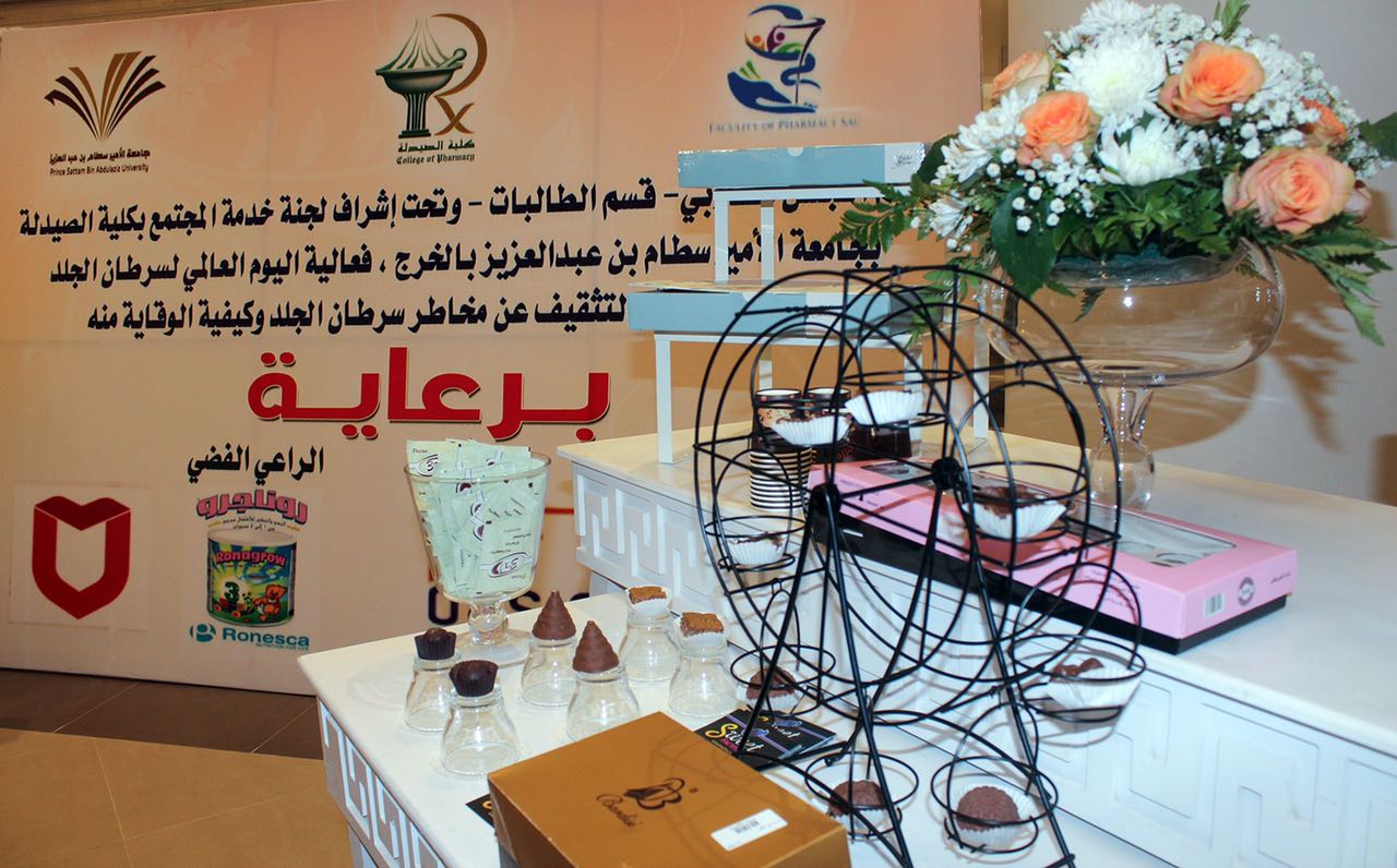 أقام المجلس الطلابي بكلية الصيدلة شطر الطالبات فعالية بعنوان ((التوعية بسرطان الجلد )) وذلك تفعيلا لليوم العالمي لسرطان الجلد على مدار يومين الخميس والجمعة الموافق 23 و 24 / 3 / 1438 هــ برعاية حلويات سويت فاكتوري و مستوصف التعاون و رونيسكا بهدف توعية المجتمع عن مدى خطورة هذا المرض وأهمية الإلمام بطرق الوقاية منه، وقد تضمنت الفعالية على أركان عديدة منها ركن التعريف بسرطان الجلد و ركن أنواع سرطان الجلد و ركن الأسباب والعوامل المساعدة لحدوث السرطان و ركن أعراض سرطان الجلد بالإضافة إلى أركان الرعاة الداعمين حيث تولى ركن الضيافة والدعم المادي متجر سويت فاكتوري و ركن قياس الضغط والسكر والوزن قام بها مستوصف التعاون ، وركن توعية الامهات عن صحة أطفالهم قامت به رونيسكا.