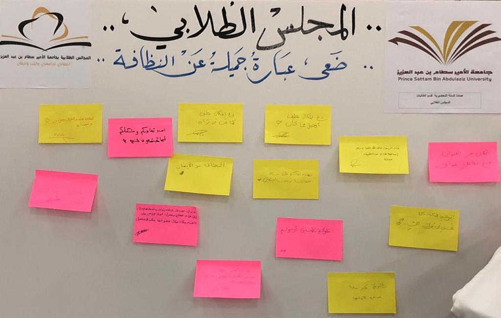 تم بحمد الله افتتاح فعاليات المجلس الطلابي بعمادة السنة التحضيرية قسم الطالبات بحملة النظافة والتي كانت بعنوان : (دع المكان أفضل مما كان) بإشراف منسقة المجلس الأستاذة نهى الثبيتي. وقد استمرت الحملة من يوم الأحد ٢/٢٦/ ١٤٤٠هـ إلى يوم الخميس ٢/٣٠ / ١٤٤٠هـ . وتمت الحملة بناءاً على رغبة الكثير من الطالبات بإقامة مثل تلك الحملات التي تهدف إلى نشر الوعي بأهمية النظافة وإشراك الطالبات في مسئولية الاهتمام بجميع مرافق الجامعة وذلك لتخفيف العبء على المستخدمات وحتى يحظى الطالبات ببيئة تعليمية صحية مناسبة. وقد شملت الحملة على توزيعات للنظافة العامة مثل معقم لليدين ومحارم ورقية مبللة وغيرها من التوزيعات التي تحمل عبارات تحفيزية عن النظافة ، كما عبرن الطالبات بعبارات مدعمة للحملة ووضعها على لوحة خاصة. وأيضاً تم عمل لافتات بعبارة جميلة ووضعها بلوحات الإعلانات على جميع ممرات العمادة ، وقد قمن طالبات المجلس بوضع ملصقات على جميع طاولات الكافتيريا ، وأيضاً قمن بعمل حملات تثقيفية شفهية للطالبات لتعزيز تلك المسؤولية . وقد شهدت الحملة إعجاب وكيلة عمادة السنة التحضيرية الدكتورة أمل الشمراني ونائبتها الأستاذة الهام الشمري والكثير من الاستاذات والطالبات .