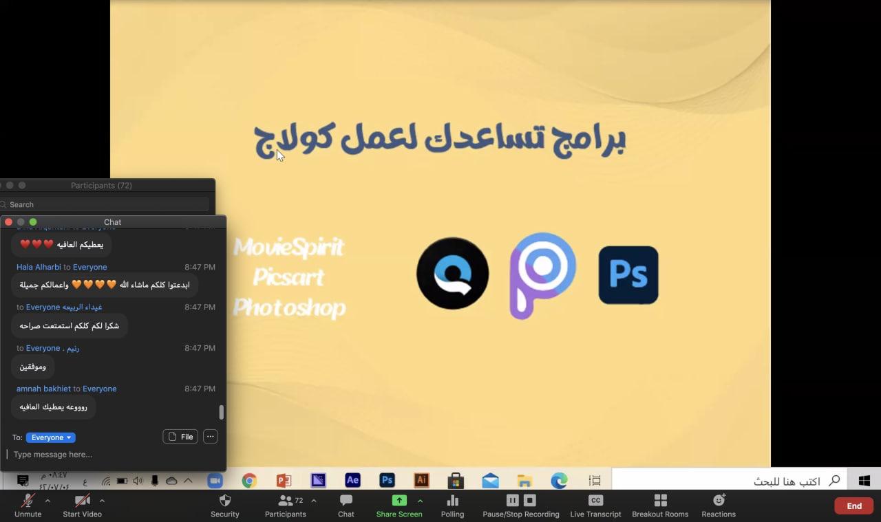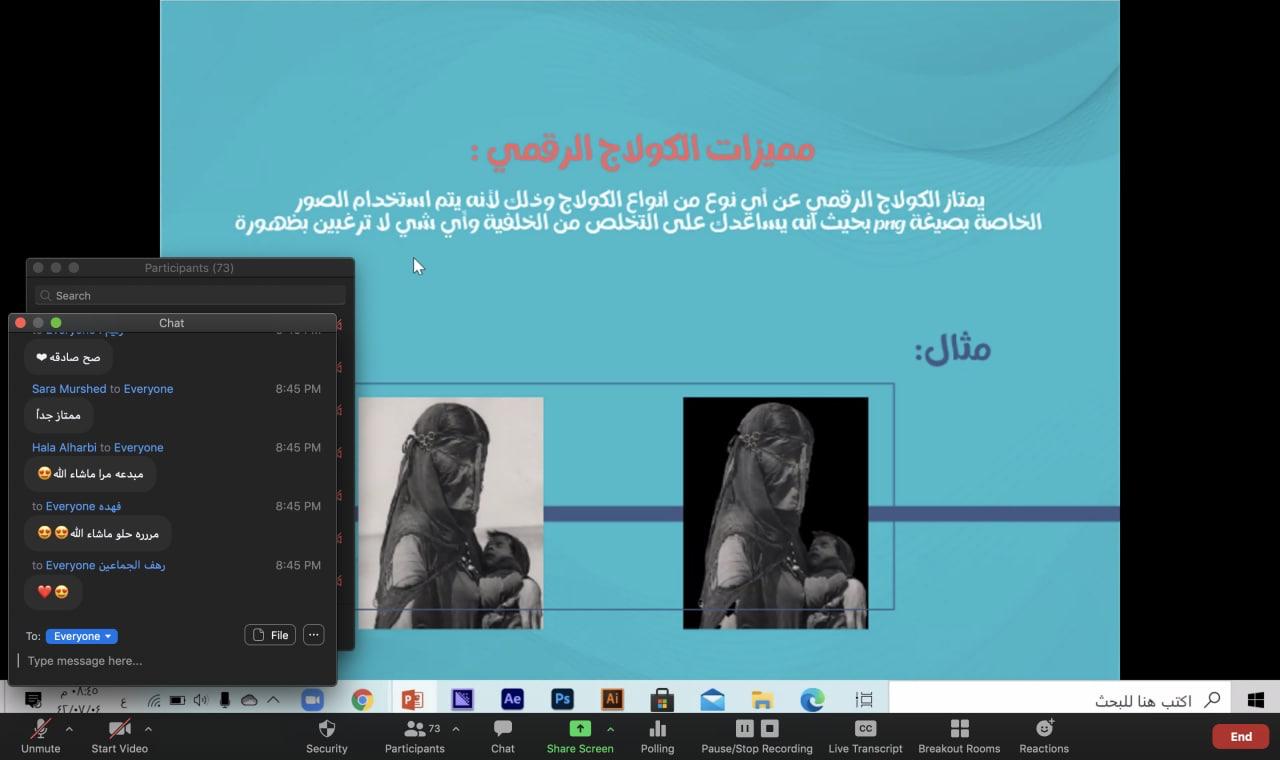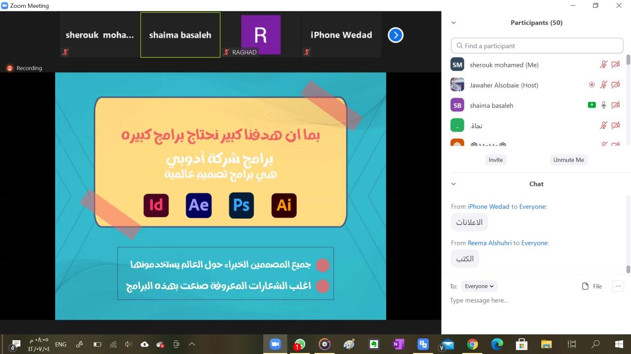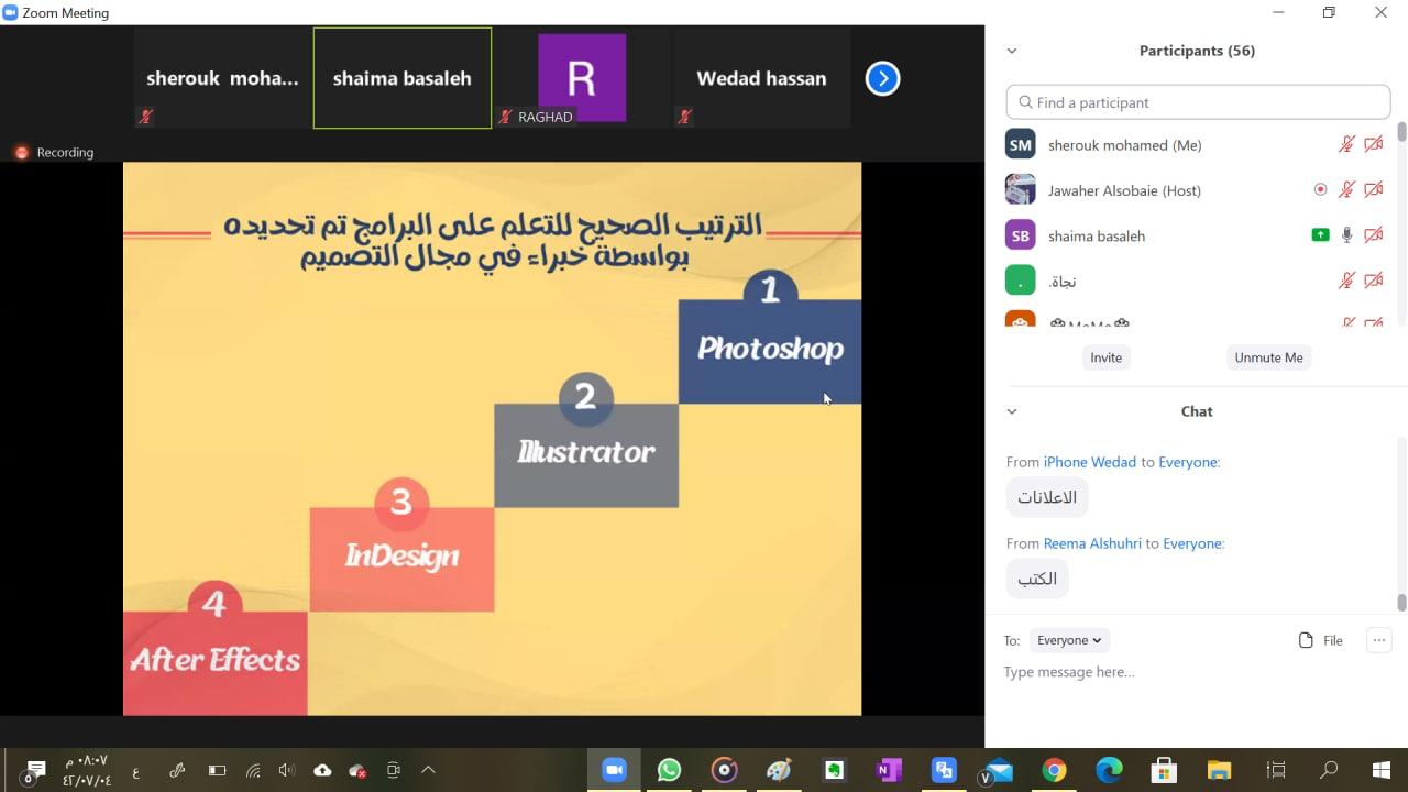 كما يقال"الإبداع ليس سوى عقول حرة" أقام المجلس الطلابي بعمادة السنة التحضيرية -قسم الطالبات-ورشة عمل "التصميم الجرافيكي"عبر برنامج "ZOOM” في تمام الـ ٨ من مساء يوم الاثنين الموافق1442/7/17هـ. بإشراف مشرفة المجلس الطلابي أ.جواهر نايف السبيعي. وتقديم الطالبتان: شيماء باصالح-أريام العنزي. وبحضور أكثر من ٧٠ طالبة مع حضور عدد من عضوات هيئة التدريس بالعمادة. تم عرض وشرح الفرق بين أنواع التطبيقات المهمة لدى المصممين العالميين مثل تطبيقات ادوبي (ADOBE) والطريق الصحيح لتعلم على البرامج التي تم تحديدها بواسطة خبراء في مجال التصميم كالتالي: