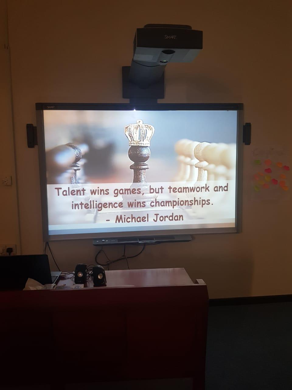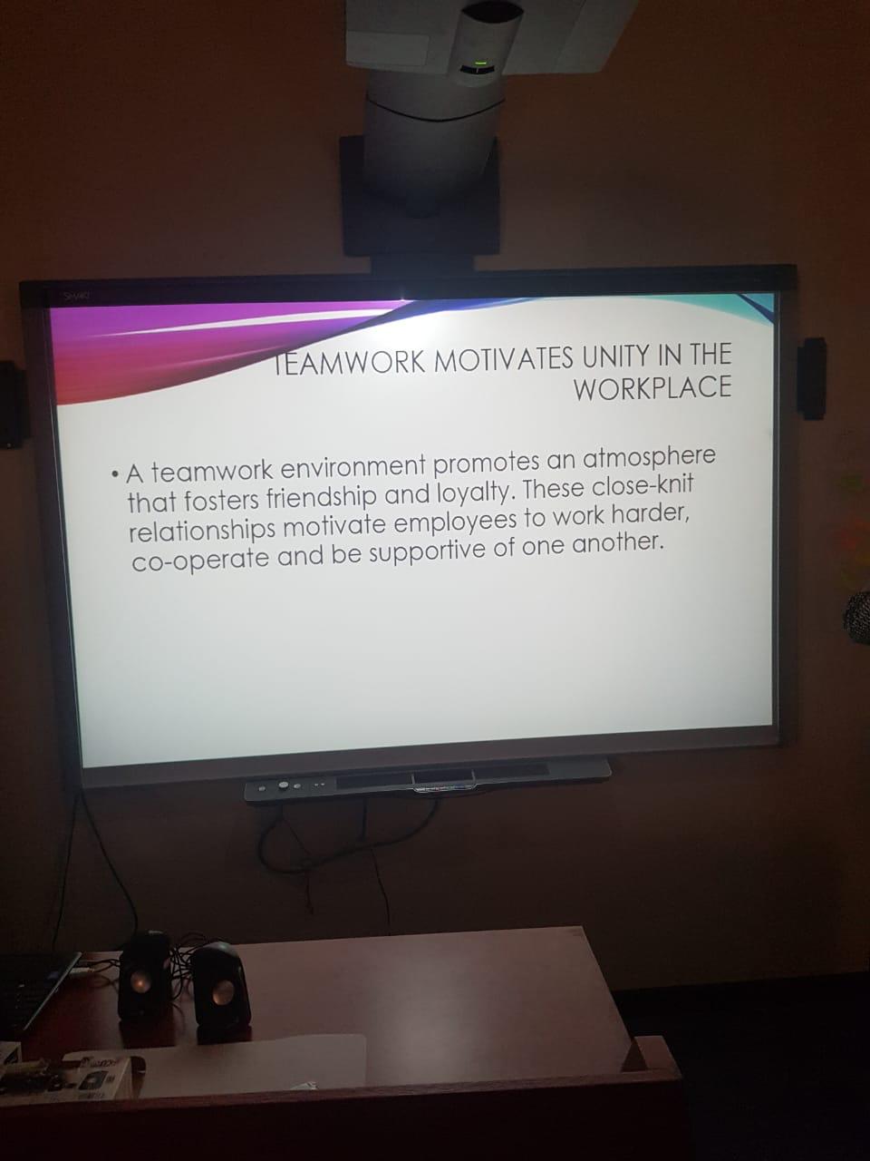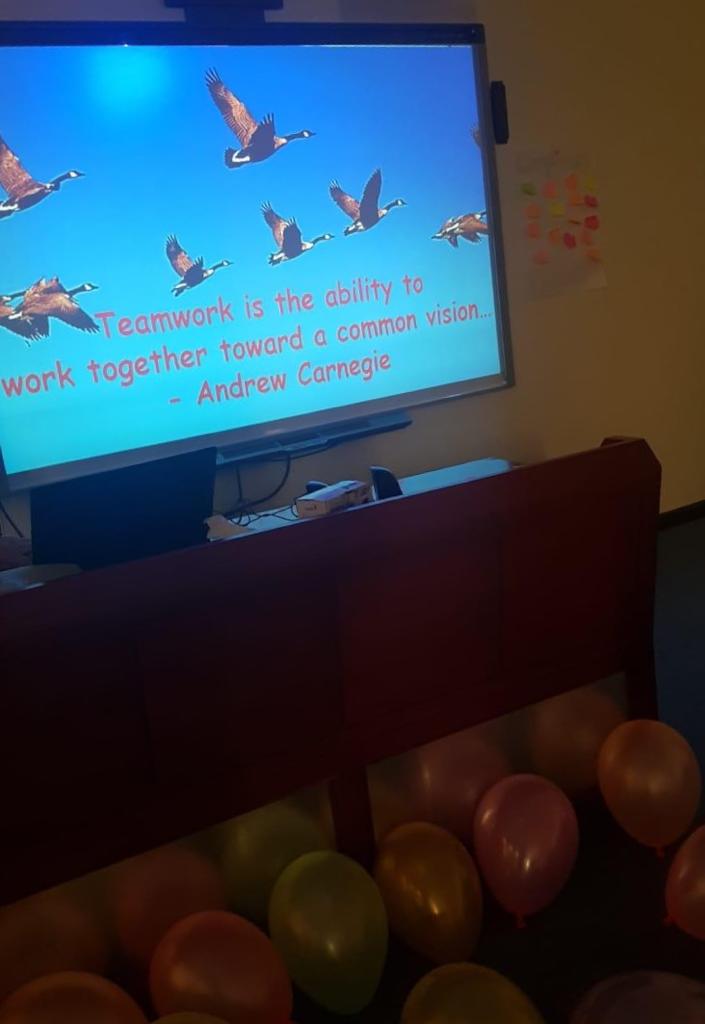 جميعنا نعلم أهمّية العمل الجماعي، ولا أحد ينكر حقيقة أن العمل بروح الفريق هو مفتاح النجاح في أغلب مجالات الحياة والعمل .لذلك نظمت وحدة التطوير المهني بالتعاون مع وحدة التدريب والتخطيط ورشة عمل بعنوان " العمل الجماعي في بيئة العمل "،استهدفت فيها أعضاء الهيئة التدريسية .وذلك يوم الأربعاء الموافق 1441/2/23هـ.بقاعة التدريب والتخطيط حيث شارك في تقديمها أ. نبيلة يوسف وأ.نزيرا فارياوا وأ.رزينة محمد.وهدفت الورشة إلى تنمية قيمة أهمية العمل الجماعي لتحقيق هدف مشترك لزيادة كفاءة العمل وتوزيع المسؤوليات بين أفراد الفريق ونتيجة لذلك سوف يسهم في عملية حل المشكلات ويزيد من إنتاج الفريق بكفاءة .واختتمت الورشة بعمل العاب تدريبية لتحفيز وتعزيز روح العمل الجماعي.